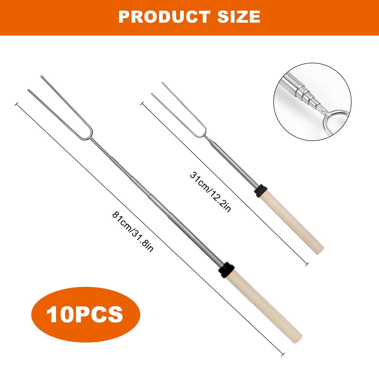 FUNNING-fourchette à barbecue BBQ Télescopique Dîner Extensible Fruits Réutilisables : les brochettes sont en acier inoxydable et ont une surface lisse sur laquelle ni la poussière ni la saleté ne peuvent s'accumuler. Lot 10 Brochettes Acier Inoxydable Pmueuff 10 Pièces Fourchettes Marshmallow Brochette Brochette Barbecue Camping Le manche en bois assure une longue durée de vie et empêche qu'il ne chauffe. Le manche en bois assure une longue durée de vie et empêche qu'il ne chauffe.Conception télescopique les brochettes à guimauves sont télescopiques, ce qui permet à votre enfant de se tenir à une distance de 30 pouces de la flamme Cet objet n'est plus disponible. 10 Pièces Fourchettes Marshmallow Brochette, Fourchette Barbecue Télescopique... Terminé. 10 Pièces Fourchettes Marshmallow... Avec une longueur de seulement 31 cm, elles se glissent dans n'importe quel sac à dos et peuvent être emportées à tout moment en camping. Elles se nettoient facilement à l'eau et peuvent être réutilisées après séchage. Contrairement aux fourchettes à barbecue traditionnelles, ces brochettes sont librement extensibles et donc plus sûres pour l'utilisateur. Matériaux de haute qualité : les brochettes à guimauves sont fabriquées en acier inoxydable 304, ce qui garantit leur durabilité et leur sécurité. Faciles à transporter : les brochettes pour pain au bâton conviennent pour la pêche, le camping, la randonnée ou pour être conservées à la maison. Elles peuvent également être utilisées comme trousses à crayons, étuis à cartes, porte-monnaie, etc.