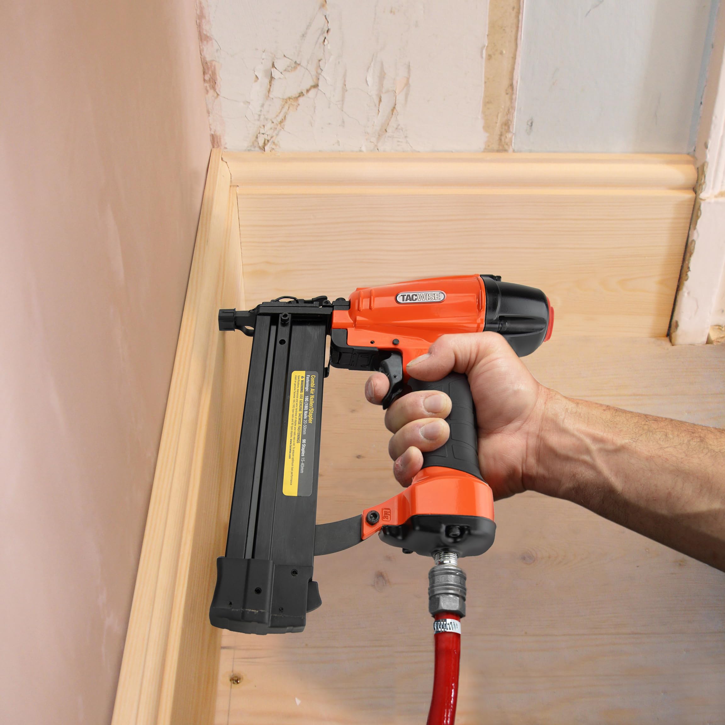 Un pistolet à agrafes et à clous polyvalent et de haute qualité qui est doté de caractéristiques professionnelles dont : une plaque frontale avec mécanisme anti-blocage et système de dégagement rapide, un embout en caoutchouc qui ne laisse pas de marques, une lame de frappe durable et un orifice d’échappement réglable à 360° pour améliorer la productivité. Agrafeuse/cloueuse pneumatique utile pour une gamme d’applications y inclus montage de meubles et panneaux, charpenterie, ébénisterie, plinthes, thibaude, clôture et encadrement de portes ainsi que la fabrication des saunas, abris, cabanes, caravanes et barques. Ce modèle est livré avec: Mallette moulée, huile de graissage, 1000 x clous de type 18G / 30 mm et 800 x agrafes de type 90 / 25 mm. Cet outil pneumatique déclenche les agrafes à couronne étroite de type 90 de 15 à 40 mm de longue et les clous Brad de type 180 (18G) de 20 à 50 mm de longue. Les 5 meilleures agrafeuses électriques de 2020 - Verrill Sauriol Il bénéficie également d’une poignée caoutchoutée et d’un nez de contact de sécurité. Une agrafeuse/cloueuse professionnelle qui apporte de la vitesse et de la précision à une large gamme de tâches en bois et générales. Cloueuse pneumatique MTX - Type 18 GA de 10 à 50 mm - Capacité 100... PERFORMANCE MAXIMISÉE - Dispose de mode de déclenchement de contact, une lame de frappe durable et un ajusteur de profondeur pour un fraisage précis des clous lorsque l’orifice d’échappement réglable à 360° offre un niveau d'émission vibratoire de 2,35 m/s² pour une performance efficace Cette agrafeuse/cloueuse pneumatique 2-en-1 est une addition unique à notre gamme d’outils à air comprimé de Tacwise. Cet outil fonction avec une pression entre 4,1 et 6,9 bar (60-100 psi) ce qui ne nécessite qu'un petit compresseur d'air (le compresseur n’est pas inclus dans cette vente). Outil Pneumatique Professionnel Bricolage SALKI | Pack Cloueuse Pneumatique CSK B12 +3000 Clous Brad AX | 25mm Outil Pneumatique 2 En 1 Tacwise Explorez la Gamme · Agrafes et Clous (276) · Outils Pneumatiques (35) · Outils sans Fil (19) · Outils Électriques (11) · Agrafeuses Manuels et Dégrafeur (22... COMPATIBILITÉ - Chargeur à dégagement rapide et rechargement par le dessus qui permet de déclencher jusqu’à 100 x clous Brad de type 180 (18G) / 20 - 50 mm ou 100 x agrafes de type 90 / 15 - 40 mm sans besoin de recharger ; il est fortement recommandé d’utiliser les attaches Tacwise pour une performance ininterrompue