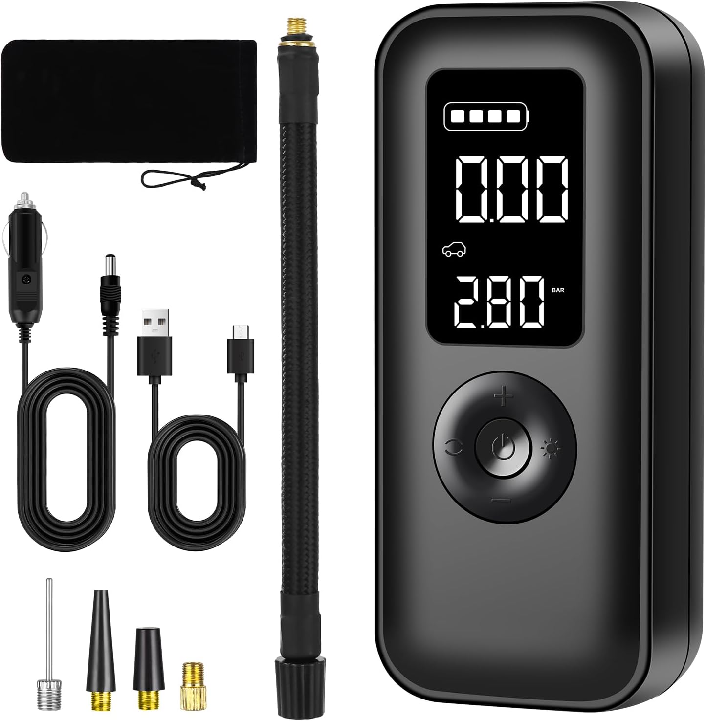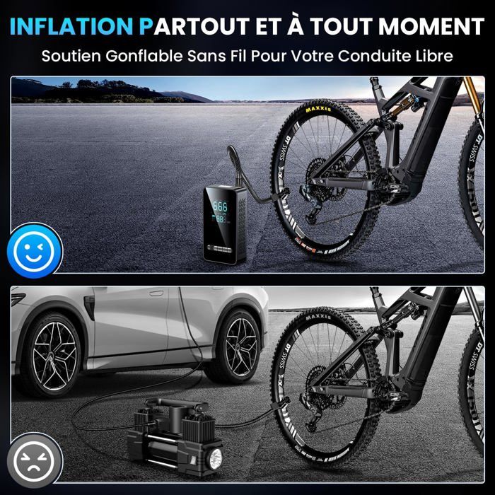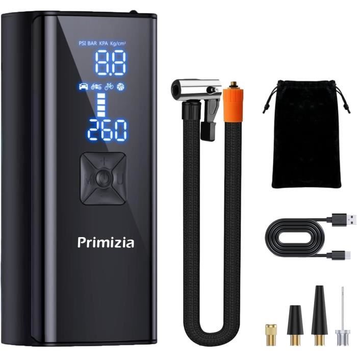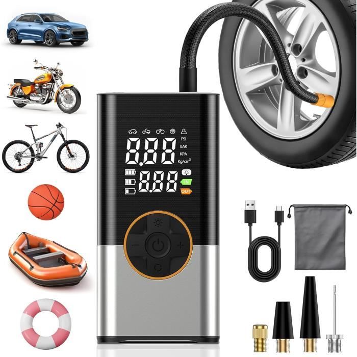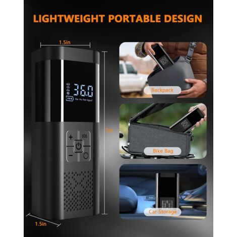 Le mode manuel vous permet de régler la valeur de pression (3-150 psi) en fonction de l'objet de gonflage. Compresseur d'air pour pneus de voiture, gonfleur portable sans Gonfleur Pneus Automatique 150 Psi Portatif Gonfleur De Pneus Portable 150PSI - Sans Fil Avec Manomètre Digital - Pompe Air Rapide Pour Voiture, Moto, Vélo Gonfleur 150psi Compresseur à Air Il n'y a pas lieu de s'inquiéter d'un surgonflage! Les lumières super lumineuses vous aident à gonfler et changer les pneus plus facilement la nuit, les modes stroboscopiques et SOS sont utiles en cas de sauvetage d'urgence. Mini Compresseur à Air Portatif,Gonfleur Pneus Voiture Gonfleur Electrique Pompe a Velo 150PSI... FACILE À TRANSPORTER: Mini compresseur à air portatif mesurant seulement 17,53 * 7,62 * 5,59 cm et pesant seulement 0,42 KG, il prend si peu de place que vous pouvez le ranger n'importe où - dans votre voiture, dans votre sac à dos, et même dans votre poche. Le gonfleur est doté d'un grand écran d'affichage numérique qui fournit des données précises en temps réel, ce qui vous permet de comprendre la pression des pneus en un coup d'œil! Peut être gonflé sur une variété de véhicules, tels que les motos,bicyclettes, peut également être gonflé sur le ballon,swimming ring,autres objets gonflables. MULTI-FONCTION: Le compresseurs d'air portatifs est livré avec buses auxiliaires supplémentaires pour répondre à vos différents besoins de gonflage.