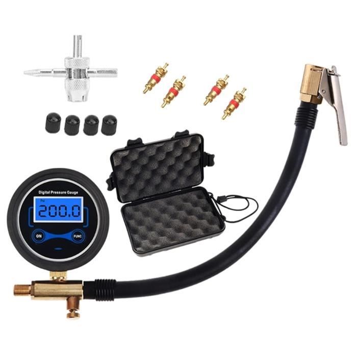 Le gonfleur de pneu est fiable. Manometre Pression Pneu Accessoire Compresseur Air ENDARK Manomètre Digital Pression Pneus - Testeur Et Gonfleur Professionnel Pour Voiture, Moto, Vélo Testeur Pression Voiture Moto Vélo Gonfleur de pneu avec manomètre réduit la fatigue lors d'une utilisation prolongée. Le manomètre de gonflage des pneus assure plus de sécurité et de confort. Le gonfleur de pneu offre une utilisation flexible pour divers véhicules. Durable et robuste : le kit de gonfleur de pneu est fabriqué en matériau de haute qualité, résistant aux chocs et durable. Akozon Testeur de pression de gonfleur d'air Gonfleur de Pneu Jauge de Affichage : écran numérique avec éclairage LED. Design européen avec lumière : le kit de gonfleur de pneu est doté d'une lumière LED pour une meilleure visibilité dans l'obscurité. Mesure précise : le kit de gonfleur de pneu dispose d'un écran de haute précision, affiche la pression des pneus en temps réel de 3 à 200 PSI / 0 à 14 bar avec une précision de ± 0,1 PSI. Le gonfleur de pneu avec manomètre est compatible avec de nombreux types de valves. Le manomètre de gonflage des pneus garantit une performance durable. Il est adapté pour mesurer la pression d'air des pneus des voitures, motos, etc. Facile à utiliser et à transporter : il suffit de le fixer au pneu et la jauge s'étendra pour vous donner une lecture rapide et précise de la pression des pneus. Petit design portable, facile à tenir et à utiliser. Mesure précise et rapide, fiable à utiliser EN STOCK : Manomètre Numérique avec Écran LCD Testeur de Pression de Pneus Gonfleur de Pneus Testeur de Pression d'Air Haute Précision 255 PSI pour Voiture... Le gonfleur de pneu offre de nombreuses possibilités d'utilisation et des performances optimales. Poignée : forme ergonomique pour une utilisation confortable Contenu de la livraison : 1 x manomètre de gonflage de pneu avec manomètre et accessoires Gonfleur de pneu avec manomètre facilite le fonctionnement nocturne. Le gonfleur de pneu est idéal pour une utilisation quotidienne à la maison ou dans l'atelier.