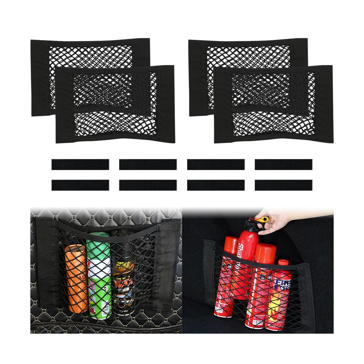 Filet de Rangement de Coffre Voiture [4 PCS 40x25cm], Organisateurs Sac La conception à double couche avec des bords très compacts sur les quatre côtés donne au sac en filet suffisamment d'espace pour tous vos effets personnels et est extrêmement résistant aux dommages. Filet Camping Car Rangement Aramox Filet De Rangement De Poche, Organisateur De Poche Filet De Rangement De Bagages De Cargaison Latérale De Coffre De Voiture (45 * 25cm Filet Pour Coffre De Voiture 【Matériau Première Qualité】: Ce filet de coffre est fabriqué en nylon flexible de haute qualité qui est très élastique et ne se déforme pas facilement. Lot de 4 Filet Rangeent pour Voiture, Filet Coffre avec... Présentation du produit CGEAMDY Filet Rangement de Coffre Voiture, 4 Pack Organisateurs Bagages Sac avec Magic Sticker, Bouteilles, Épicerie [509] [Ajustement universel] : Nous proposons trois tailles de sacs de rangement : 30*25 cm, 40*25 cm et 50*25 cm. Ils conviennent à tous les coffres, bagages et à la maison et peuvent fournir un... Gardez votre voiture propre, rangée et en ordre. 【Fonctions Multiples】: Avec ce sac en filet, vous pouvez augmenter l'espace de stockage et vous pouvez trier et ranger des choses dans votre voiture, telles que des collations, des tasses, des nettoyants, des livres, etc. 【Adaptation Universelle】: Nos filets de rangement sont si résistants qu'ils peuvent stocker tous vos effets personnels sans les détruire et peuvent être utilisés dans une large gamme d'applications pour les voitures, les caravanes, les bateaux, les maisons et plus encore. - Surface en maille très élastique, résistante et difficilement déformable, ne prenant pas de place, pratique pour le rangement. Une fois triés et sécurisés, vous n'avez plus à vous soucier de les perdre ou de les endommager sur les bosses. - Le filet de coffre permet de ranger facilement les objets divers, ce qui rend la voiture plus ordonnée.