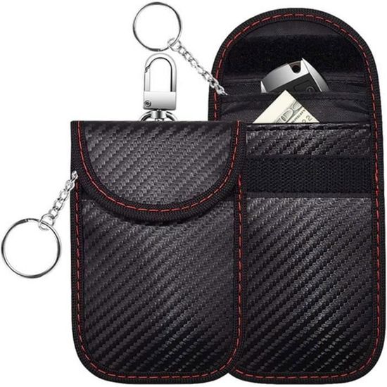 Boîte Anti RFID & Lot de 2 Signal Blocage Faraday Pochette Protégez efficacement votre signal de voiture contre le vol Pochette Faraday Porte-clés Pochette De Protection Anti-vol Sur Cage De Faraday Rfid Effet de blindage: Le sac clé est en fibre métallique protégé à double couche. Un dispositif anti-RFID, comme une pochette ou une boîte Faraday, bloque les signaux émis par les technologies RFID (Radio Frequency Identification) pour protéger vos données personnelles contre les scans non autorisés Matériau de qualité supérieure] Goût impeccable et qualité accrocheuse, ce pochette faraday clé voiture est fabriqué en similicuir durable imitation... Portable: La petite taille est idéale pour les clés de voiture, les cartes et autres petits appareils électroniques. Facile à utiliser: placez simplement vos clés de voiture dans le sac, puis fixez le V-Elcro. Cette taille peut accueillir la plupart des petits appareils Protégez efficacement vos clés de voiture contre le piratage, le vol de signal et les attaques par entrée sans clé REMARQUE : la taille de ces sacs Faraday est uniquement prévue pour les clés de voiture, et non pour les téléphones portables Protégez à tout moment votre clé de voiture ou votre carte de carte CICMOD 2 x Pochette Faraday, Pochette Antivol Clé Voiture