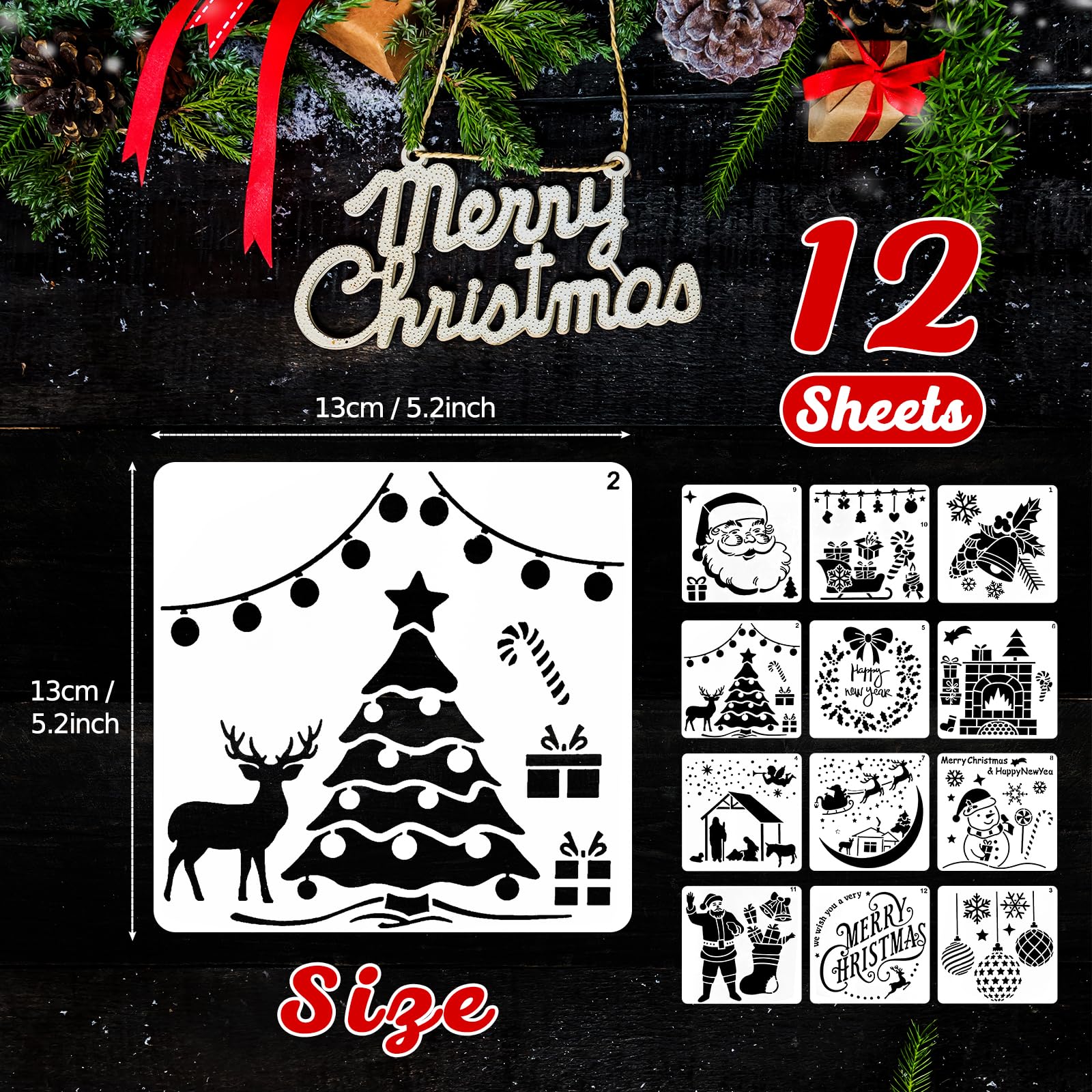 Déco Maison Noël DIY 12 Pièces Pochoir De Noel Pour Vitre, FUKPO Pochoir Noel Petit Enfant Déco Fenêtre Pochoir Déco Noël | Fabricant Français de Pochoirs Pochoirs de Noël réutilisables pour peinture sur fenêtre en bois, petits pochoirs en forme de flocon de neige pour travaux manuels, pochoirs de vacances... Pas d'arêtes vives. 【Facile à utiliser et à nettoyer】-Tous les pochoir de dessin de peinture de Noël sont conçus pour s'adapter à la plupart des tailles de papier à lettres et de cartes et faciles à utiliser. Peinture acrylique, craie, air spray, stylo plume, stylo bille, stylo de couleur, crayon permettent de dessiner différents motifs selon le contour du creux. Ces éléments de Noël classiques apportent des décorations intéressantes à votre projet, maison ou mur, ajoutant à l'atmosphère de Noël. Après utilisation, vous pouvez facilement le rincer à l'eau et au savon. Vous pouvez les utiliser pour passer un Noël unique avec votre famille et vos amis. 【Large application】 L'ensemble de pochoir pour fenêtre de Noël est très approprié pour les décorations de Noël, ce qui est d'excellents outils pour les décorations murales, les décorations de fenêtre, la peinture, les albums, les albums photo de bricolage, les peintures, la fabrication de cartes, les calendriers, les timbres, les étiquettes-cadeaux et autres objets artisanaux projets. Ce kit de 8 pochoirs va vous faire kiffer pour décorer toute la maison. Motifs include : Joyeux Noël, Père Noël, sapin, flocons de neige, boules, renne et...
