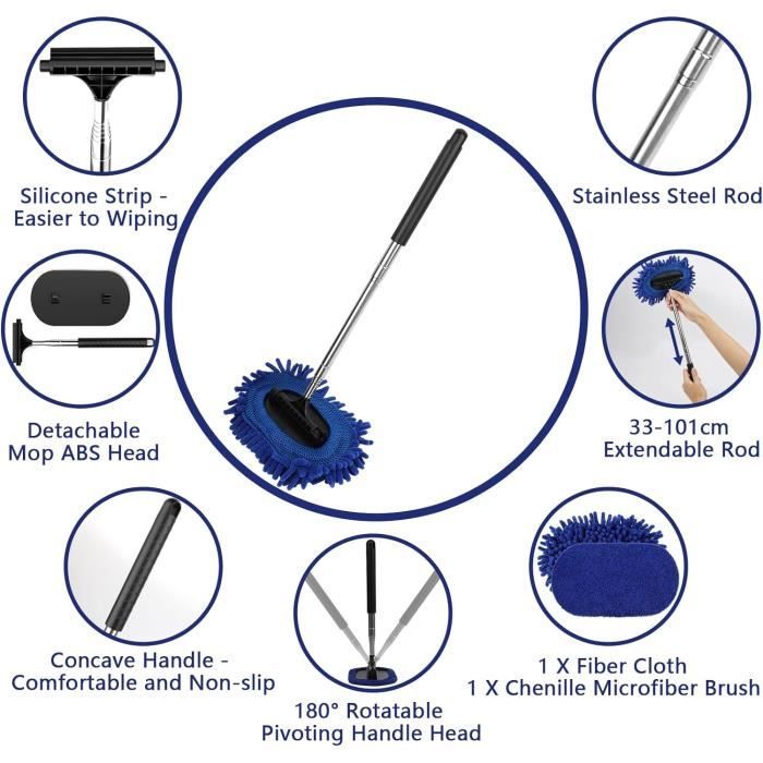 Large utilisation : l'outil de nettoyage extensible peut non seulement être utilisé comme un outil de nettoyage pour l'intérieur et l'extérieur de la voiture, mais peut également être utilisé pour les fenêtres de votre maison, les écrans TV en verre, les miroirs et ainsi de suite, adapté à toutes les tailles de voitures, c'est une bonne aide pour faire le nettoyage Kit Télescopique Avec Tampons Microfibre Lot De 2 Outils De Nettoyage Pour Pare-brise De Voiture Avec Poignée Amovible, 6 Tampons En Microfibre Et 2 Flacons Pulvérisateurs Pour Intérieur De Voiture Vitre Teintée Voiture Les outils de nettoyage de vitres de voiture ont une performance de nettoyage supérieure. Comment bien nettoyer l’intérieur et l’extérieur du pare-brise et des... Si vous avez des questions ou des suggestions, veuillez nous contacter et nous vous fournirons un service 100 % satisfaisant à tout moment Kit de brosses de nettoyage pour vitres de voiture en microfibre : vous recevrez une poignée télescopique, 1 plaque de base, 1 housse en tissu microfibre, 1 housse en tissu chenille, une housse en tissu peut être lavée, peut être réutilisée de nombreuses fois, économique, ce qui permet d'économiser le coût des lingettes jetables Description de Outils de nettoyage de pare-brise, nettoyeurs de vitres de voiture, outils 1. [Nettoyeur de vitres] Grâce à sa poignée extensible et à sa tête pivotante à 180, vous pouvez nettoyer facilement l'intérieur des grands pare-brises. 2. [Poignée rétractable] Doté d'une poignée rétractable, ce nettoyeur de vitres atteint facilement les zones hautes ou difficiles d'accès du... Les données ci-dessus sont le résultat de mesures manuelles. Avec une poignée rétractable et des tampons en microfibre de haute qualité, le nettoyant pour pare-brise de voiture de l'intérieur élimine facilement la poussière, la saleté et les taches du pare-brise pour une vision plus claire Avec sa poignée amovible et son design extensible, l'outil magnétique de nettoyage de pare-brise de voiture tient confortablement dans la boîte à gants ou la poche de la porte et est toujours prêt pour un nettoyage rapide avant de conduire Astuce Veuillez vérifier la taille du produit avant d'acheter. Design rétractable : l'outil de nettoyage de vitres de voiture dispose d'un design rétractable robuste en acier inoxydable qui est facilement réglable en longueur, vous permettant de nettoyer sans effort à la fois les grandes zones et les endroits étroits, atteignant facilement chaque partie du pare-brise et des fenêtres pour garantir une finition impeccable. Kit de brosse de nettoyage de vitres de voiture,essuie-glace en Le produit que vous avez commandé sera soigneusement emballé pour le protéger pendant le transport et faciliter votre stockage et votre utilisation. Essuyez, désembuez et accrochez en un : l'outil de nettoyage intérieur de pare-brise élimine facilement la buée, les taches, la poussière et la saleté du verre avec juste de l'eau, pas de nettoyant supplémentaire n'est nécessaire, le chiffon en microfibre dans l'outil de nettoyage de pare-brise intérieur de voiture élimine la poussière et la saleté sans laisser de traces d'eau