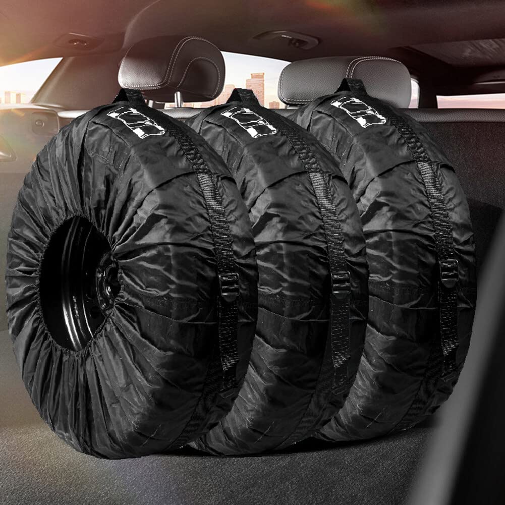 - Les housses s'adaptent à une large gamme de pneus pour une protection complète, tous compatibles avec les montures de jantes. Housse de rangement pour pneus - MARQUE - 420D - Protection solaire - Imperméable - Résistante Il peut ensuite être tiré sans effort sur la pile de pneus pour gagner du temps. Housse Stockage Pneus Voiture 4 Pcs Housse De Pneus Avec Poignée Housses De Roue De Secours Couleur Rouge Et Noir Taille L Protection Pneus étanche 85x120 - Ultra étanche pour éviter d'endommager vos pneus et les protéger des rayons UV, de la pluie, de la poussière et de la neige en toute saison, ce qui prolonge la durée de vie de vos pneus. 【Haute Qualité】: Le sac de protection des pneus est fabriqué en tissu Oxford 210D 100 % polyester et durable. Housse de pneu de voiture, 85 x 120 cm, sac de rangement pour 4 pneus, sacs à pneus avec fermeture éclair, sacs... Il peut être utilisé à l'extérieur et en plein air. Utilisés à l'extérieur comme à l'intérieur pour protéger les pneus de l'usure, de la poussière et des intempéries, ils sont indispensables pour le stockage saisonnier des pneus et contribuent à prolonger leur durée de vie. Sac à pneus Housse pour pneus Sac de protection pour 4 pneus 80*120cm... 【Protection Optimale】: Les sacs pour pneus de voiture de haute qualité sont parfaits pour le stockage des pneus d'été et d'hiver. Grâce au revêtement argenté, le sac de protection des pneus est également protégé contre le vent, la pluie et les UV, ce qui le rend idéal pour une utilisation en extérieur. 【Facile à Utiliser】: la housse de protection des pneus de voiture est facile à utiliser et, grâce à une fermeture éclair pratique, tout le côté de la protection des pneus peut être ouvert. Spécifications : - Nom du produit : Housse d'empilage pour quatre pneus - Couleur du produit : Argent 210D L ; Noir 210D L - Matériau du produit : Fibres de polyester, tissu oxford 210D - Dimensions du produit : 85*120cm - Pression d'eau : 2000mm - Poids du produit : 330g - Type d'application : Universel - Le produit comprend : 1Pc Caractéristiques : - Matériau de haute qualité, résistant à la pluie, aux déchirures et aux fissures dues au froid, durable et enduit pour protéger vos pneus du soleil et ralentir leur vieillissement tout au long de l'année. Il est livré avec un sac de rangement et est compact pour être facilement transporté et rangé.