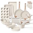 STONELINE Ceramic Batterie de Cuisine Céramique 16 pcs 18/20/24/28 Sans Le couvercle hermétique emprisonne la chaleur et l’humidité pour éviter les éclaboussures, et les évents de vapeur pour une cuisson contrôlée. Set Cuisine Cadeau Maison JEETEE En Céramique, 13 Pièces, Antiadhésives, Avec Poignées Rotatives Amovibles, Ensemble De Cuisine Sain Et Non Toxique Pour Toutes Les Cuisinières, Casseroles Empilables, Passe Batterie De Cuisine 【CONCEPTION DE DÉTAIL INNOVANTE DE SÉCURITÉ HUMANISÉE】 Poignée ergonomique anti-brûlure, ferme et facile à saisir avec moins d’effort ; Les deux ports déflecteurs latéraux empêchent les gouttes et offrent un contrôle stable pendant la cuisson. Doté de poignées amovibles et d’un design empilable, il s’adapte parfaitement aux espaces restreints des camping-cars. De plus, sa composition sans PFAS/PFOA garantit une cuisson saine et sécurisée, vous offrant ainsi un allié indispensable pour vos aventures culinaires JEETEE Set de casseroles et poêles anti-adhésif avec poignée aovible... Répondez à toutes sortes de besoins culinaires, c’est tout simplement l’essentiel de la cuisine pour une nouvelle maison ! La conception anti-éclaboussures et l’extérieur en acier inoxydable sont à la fois pratiques et esthétiques. 【JEETEE BATTERIE DE CUISINE 28 PCS 】 Poêle à frire 20/24/28CM / Casserole avec couvercle 16/20CM / Poêle à crêpes 24CM / Poêle à griller carrée 28CM / Poêle profonde avec couvercle 28CM / Casserole avec couvercle 4., 5L / 4 moules à pâtisserie avec poignées en silicone / 10 protecteurs de casseroles et poêles / râteau à crêpes Certifié indépendamment comme PFOA/PFOS free, éliminant l’infiltration de substances nocives à la source et préservant la santé alimentaire de la famille. Résiste à des températures allant jusqu’à 240℃ et convient à tous les types de poêles, y compris l’induction, la céramique, le gaz et l’électricité. 【BATTERIE DE CUISINE SAINE ET NON TOXIQUE DE NOUVELLE GÉNÉRATION】 L’ensemble de casseroles et poêles Jeetee utilise un revêtement à trois couches supérieur aux surfaces antiadhésives traditionnelles, subvertissant l’expérience de cuisson traditionnelle.