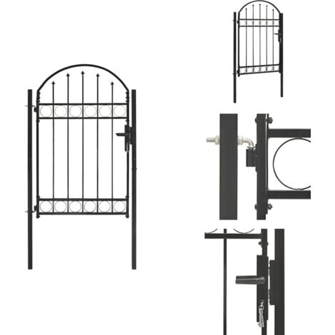 Portillon - AKOZON - Simple avec dessus arqué - Acier noir - 100x150 cm... Ce portail de jardin formera une barrière pratique et en style contemporain, qui séparera votre jardin du monde extérieur. Très stable et durable, le portail de clôture offre une barrière de jardin pratique pour votre jardin, terrasse ou patio. Avec des barres verticales surmontées de pointes de lance et un renfort horizontal solide comme renfort, notre porte de jardin offrira un degré... Portillon De Jardin 1m Portillon Double Porte Avec Dessus à Pointe Acier 3x1,75 M Noir | Leroy Barrière Jardin Portillon en acier au meilleur prix | Leroy Merlin