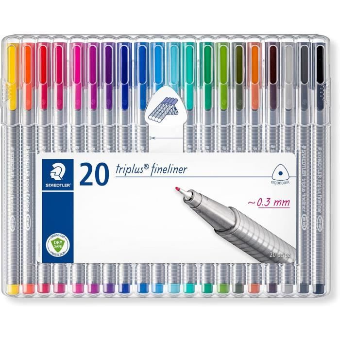Couleurs vives pour vos projets créatifs. Les feutres à pointe fine offrent un débit d'encre uniforme et des couleurs vives qui donnent vie à n'importe quel projet. Pour écrire, dessiner et colorier de manière fine et précise La pointe en métal permet de dessiner exactement le long de celui-ci. Couleurs intenses à base d'eau La pointe du Fineliner permet un débit d'encre constant pour un plus grand confort d'écriture. Nous compensons désormais les émissions de CO2 de tous les stylos fabriqués dans notre usine européenne basée en France (74) en soutenant et finançant le projet « Clean Ocean Plastic Banks » proposé par Climate Partner Couleurs: Un ensemble uniforme de 10 stylos dans une riche teinte bleue. Parfait pour une utilisation avec des règles ou des pochoirs. Votre outil parfait pour l'art et l'écriture Stabilo Pointe Fine 88 Triplus Fineliner, Feutres À Pointe Extra-Fine Pour Écriture Et Contours, Étui Chevalet Avec 20 Stylo 4 Couleurs L'outil d'écriture idéal pour dessiner, peindre et esquisser. Pour les dessins techniques ou tout simplement pour écrire. Schneider Line-Up... Sèche vite, ne bave pas, résiste à la lumière, est non toxique et reste utilisable longtemps. Haute qualité: Épaisseur de trait variable entre 0,4 mm à 0,8 mm grâce à une pointe profilée. Parfait pour annotations dans carnets, journaux intimes, calendriers, mémos et signatures. Idéal pour écrire, peindre et dessiner, ainsi que pour esquisser, illustrer ou bricoler. Peintures,Stylos Fineliner 24 couleurs,0.4mm,pointe Fine,marqueur de couleur pour dessin Durabilité: Longue durée grâce à l’encre abondante et au boîtier anti-évaporation. Pour des lignes fines, tenir le stylo de 0,4 mm aussi verticalement que possible. Pour les lignes moyennes, utilisez une tige de 0,8 mm oblique par rapport à la surface. Capuchon de sécurité ventilé