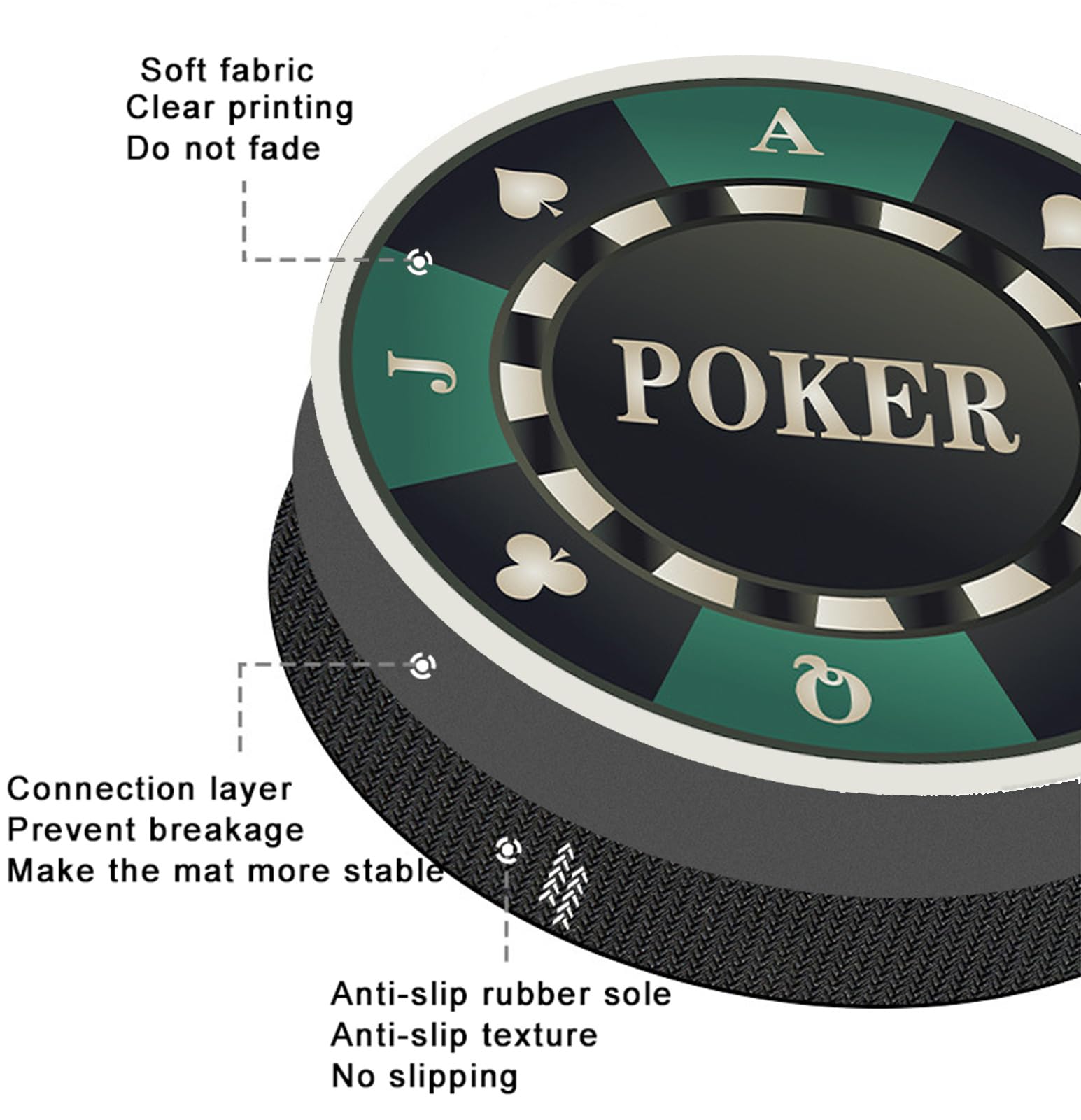 Parfaitement dimensionné pour une utilisation de bureau et prend en charge une utilisation à plusieurs personnes. Base antidérapante : la base en caoutchouc du tapis de table de poker peut fermement saisir la table sans vous soucier du mouvement du tapis de table, garantissant que le jeu fonctionne de manière stable aux moments critiques, apportant une expérience de jeu confortable. Tapis De Jeux Carré Générique Tapis De Table De Poker Rond Tapis De Table De Poker Antidérapant Dessus De Table De Poker Portable Facile À Enrouler Et À Ranger Pour Les Jeux De Cartes Partout,002,120 Accessoire Poker Maison Camping Une table de poker avec une carte de poker dessus et une lumière en bas. | Image Premium générée... Facile à transporter : le matériau souple du tapis de table de poker peut être facilement enroulé et rangé, ce qui le rend facile à transporter si vous assistez à des fêtes en plein air ou faites du camping. Avec son sac de transport pratique, vous pouvez emporter ce tapis de poker avec vous partout où vous allez, que ce soit en camping, en randonnée, en camping-car, en road trip, en fête de bureau ou toute autre activité. Tapis de table de poker : le tapis de table Texas Hold'em de forme ronde est fabriqué en tissu de haute qualité et en caoutchouc naturel, avec une surface lisse, imperméable, résistant aux rayures, à l'humidité, sans odeur, doux et durable. Service client : si vous avez des questions sur nos produits, vous pouvez nous contacter à temps et nous vous répondrons dans les 24 heures. Les taches de couleur et les taches d'huile doivent être nettoyées à temps. Épaisseur : 2 mmCaractéristiques de style : fin, ultra léger, doux et durable, antidérapant, imperméable. Vous pouvez jouer à des jeux de cartes avec vos amis. Si vous avez des questions sur nos produits, vous pouvez nous contacter à temps et nous vous répondrons dans les 24 heures. Retrouvez nos tapis au format rond pour les joueurs amateurs ou professionnels de poker, avec un maximum de 10 places. Nous vous proposons nos tapis en jersey-polyester néoprène en 3 mm d'épaisseur Convient à la scène : ce tapis de poker durable peut transformer la table en une table de jeu de poker professionnelle. Il peut également être utilisé comme coussin de protection de bureau, coussin de chaise, etc. liste de colisage:1 * nappe de poker., Avis:1., En raison des différents moniteurs, il peut y avoir de légères différences de couleur., 2., Il peut y avoir des différences de 1 à 3 cm en raison de la mesure manuelle., 3., En raison de la méthode d'emballage pliée, il peut y avoir de légers plis. Boutique de tapis et dessus de table pour jeux de cartes