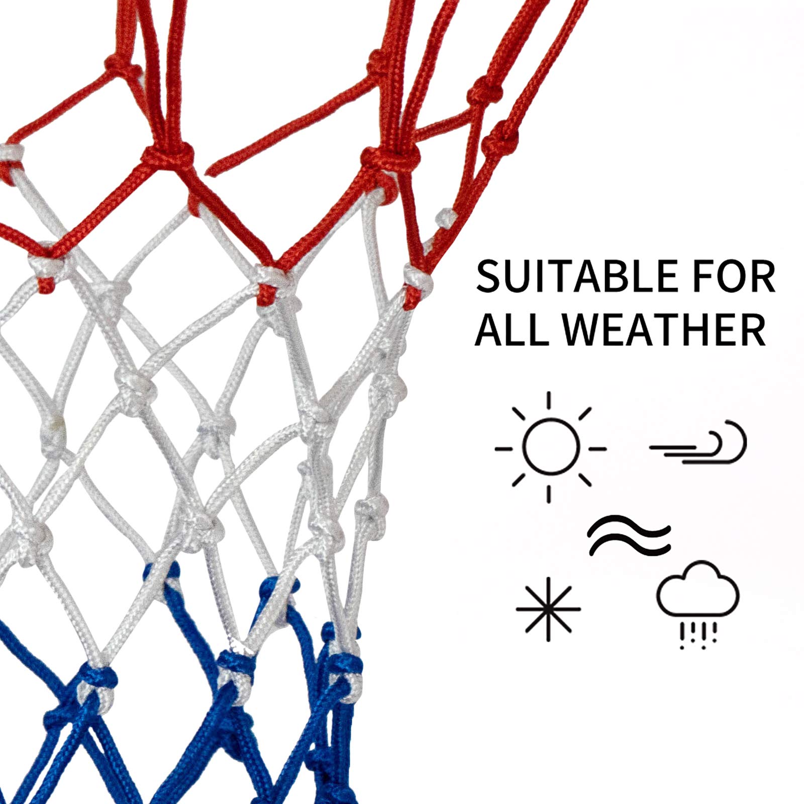 Il s'adapte parfaitement aux terrains extérieurs, aux gymnases intérieurs, aux terrains de sport scolaires ou aux arènes professionnelles, complétant ainsi toute configuration de panier de basket-ball. Filet De Basket Extérieur 2PCS Filet Basket En Polyester, Filet De Basketball Amovible 12 Boucles Filet Panier Standard Compétition Durable COYUN 2 pièces Filet en Polyester, Basketball Amovible 12 Boucles, Rechange Basket-Ball, résistant à la Pluie et au Soleil, pour intérieur et extérieur, Standard Größe, 12 schlaufen Marqueur craie résist. pluie Uniball - Bleu clair Il suffit de fixer les boucles aux deux extrémités du filet dans les trous correspondants du panier de basket. 【QUALITÉ DE COMPÉTITION】 : Grâce à la technologie de tissage croisé et à sa construction sans couture, le filet est robuste et résistant au détachement. Ce filet de basket-ball anti-fouet est fabriqué en polyester, ce qui garantit une plus longue durée de vie même si vous le mettez à l'extérieur. Notre filet peut résister à tout type de conditions météorologiques. Filet de rechange pour panier de basket-ball qui amortit le ballon de basket et empêche tout enchevêtrement à l'intérieur du Caractéristiques 【MATÉRIAU DU PRODUIT】 : Fabriqué à partir de fibre de polyester de première qualité, le panier de basket exterieur offre une élasticité exceptionnelle. 【CONTENU DU KIT】 : Vous recevrez deux filet panier basket exterieur adaptés aux paniers de basket de taille standard, avec 12 anneaux de suspension. Sa conception nouée améliore à la fois l'esthétique et la stabilité. Filet de Basket - Marque - Modèle - Nylon - 12 Boucles - Utilisation L'installation et le remplacement sont très simples. 【APPLICATION POLYVALENTE】 : Mesurant 50 cm de diamètre, ce filet s'adapte parfaitement aux paniers de basket-ball avec un cerceau de 45 cm.