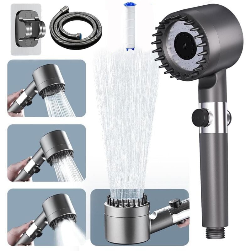 POMMEAU DOUCHE ANTI CALCAIRE: pomme de douche à économie d'eau contient un filtre,puissant système de filtration qui filtre facilement les impuretés de l'eau telles que les sédiments,les odeurs, etc,pour protéger votre peau et vos cheveux. Ce puissant jet d'eau peut également nettoyer facilement la baignoire ou la douche après le bain. Équipée d'une bande de massage en silicone liquide, elle procure un plaisir de niveau SPA et rend le bain plus agréable. La conception technique avancée de la pomme de douche garantit que toutes les buses délivrent une quantité d'eau équilibrée, et la puissante pression de l'eau soulage doucement votre corps fatigué en quelques minutes seulement. Anti calcaire pommeau de douche - Haute pression et filtration avancée Le jet d'eau énergisant couvre tout votre corps et élimine rapidement la mousse de votre corps, ce qui procure à votre peau une sensation agréable et vivifiante. L'espace interne de la pomme de douche est bien structuré et les orifices de sortie de l'eau sont uniformément répartis. Pommeau Douche anti Calcaire Pommeau de Douche Stop Avec Tuyau 1,5m... SI VOUS AVEZ DES QUESTIONS SUR NOTRE POMMEAU DE DOUCHE, N'HÉSITEZ PAS À NOUS CONTACTER ! POMME DE DOUCHE HAUTE PRESSION: La pomme de douche peut être fortement pressurisée pour résoudre l'inconvénient d'une pression d'eau insuffisante. MATÉRIAU DE HAUTE QUALITÉ: Cette douchette est fabriquée en ABS chromé durable, écologique et respectueux de l'environnement, et l'extérieur est recouvert d'une peinture multicouche au four, anticorrosive, résistante à la rouille et à l'usure. Pomme De Douche Pommeau De Douche Anti Calcaire Haute Pression, Douchette Douche Salle Pommeau Douche Haute Pression CSPARKV Pommeau de Duche avec tuyau 1,5M, Pommeau de Douche Economie... Le support est étanche, a une grande capacité de charge .