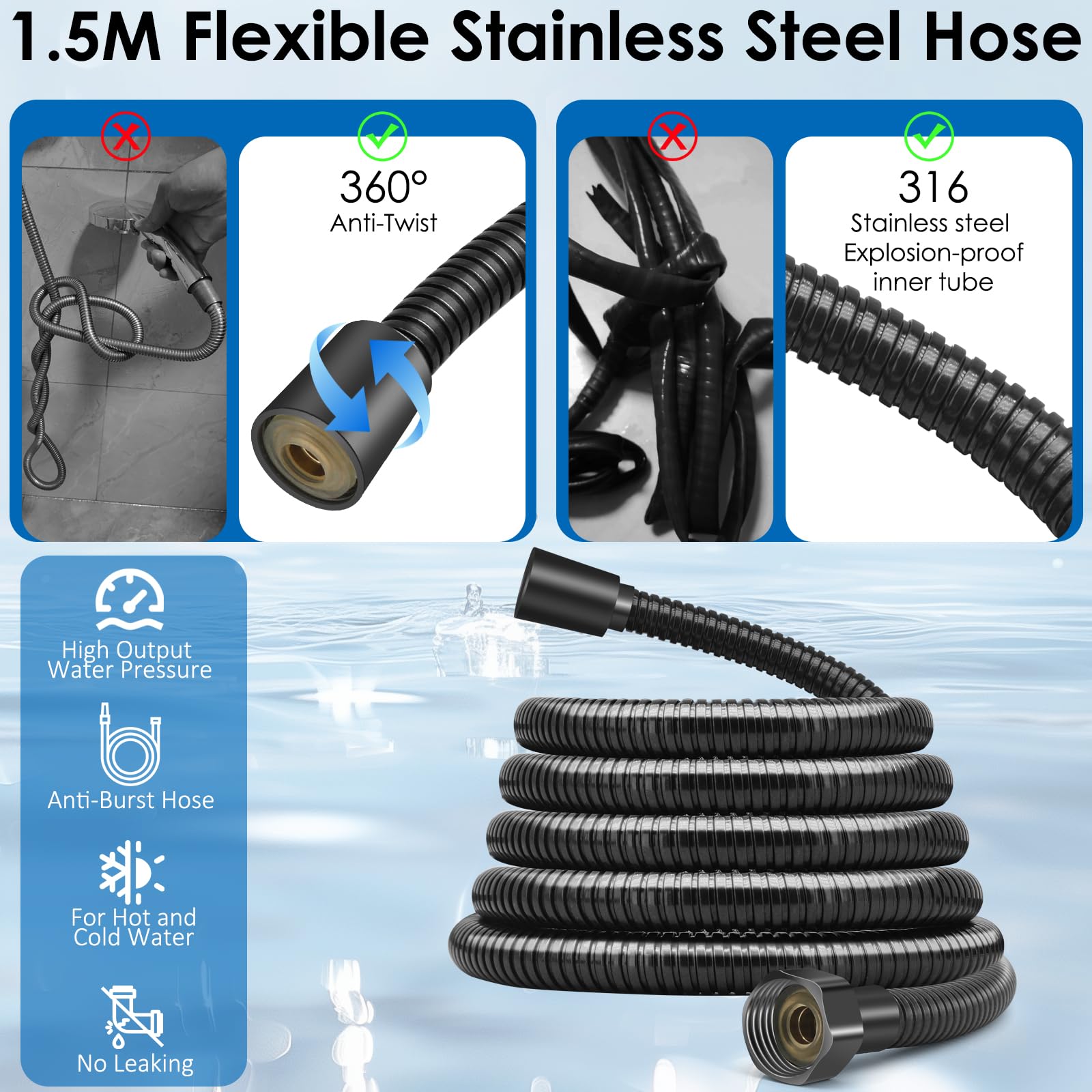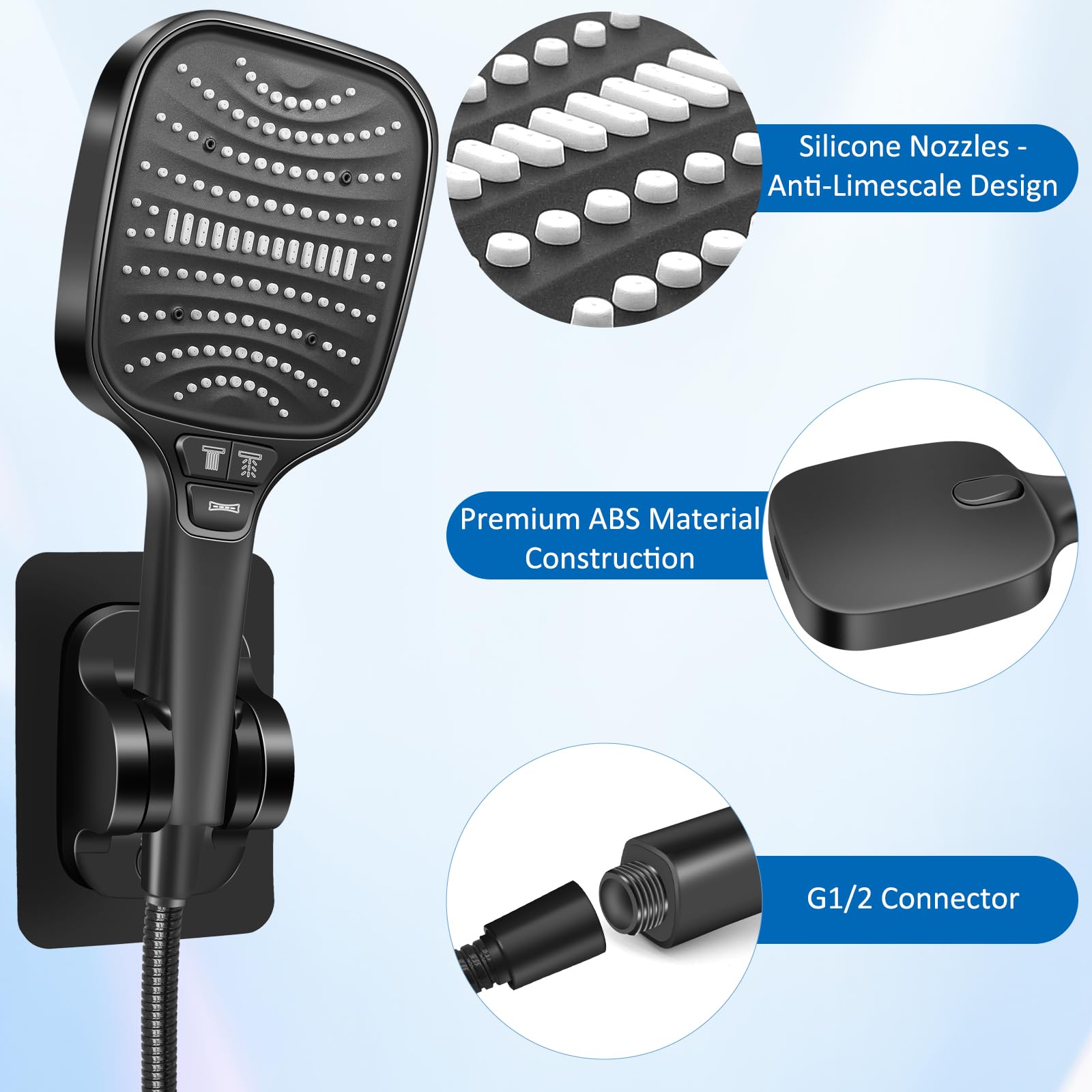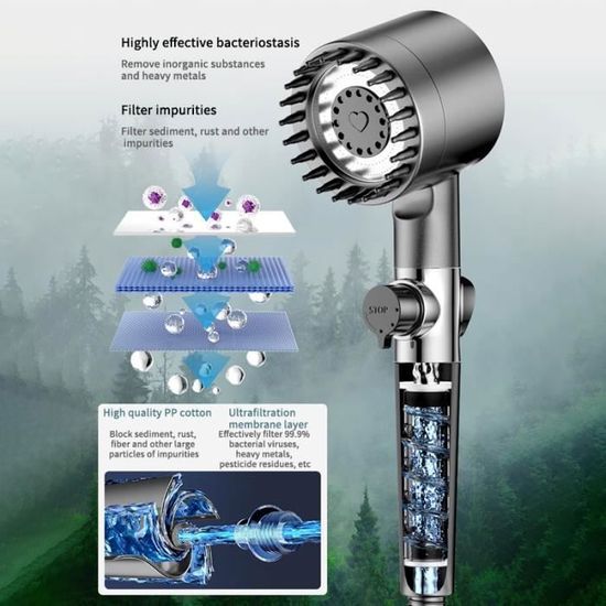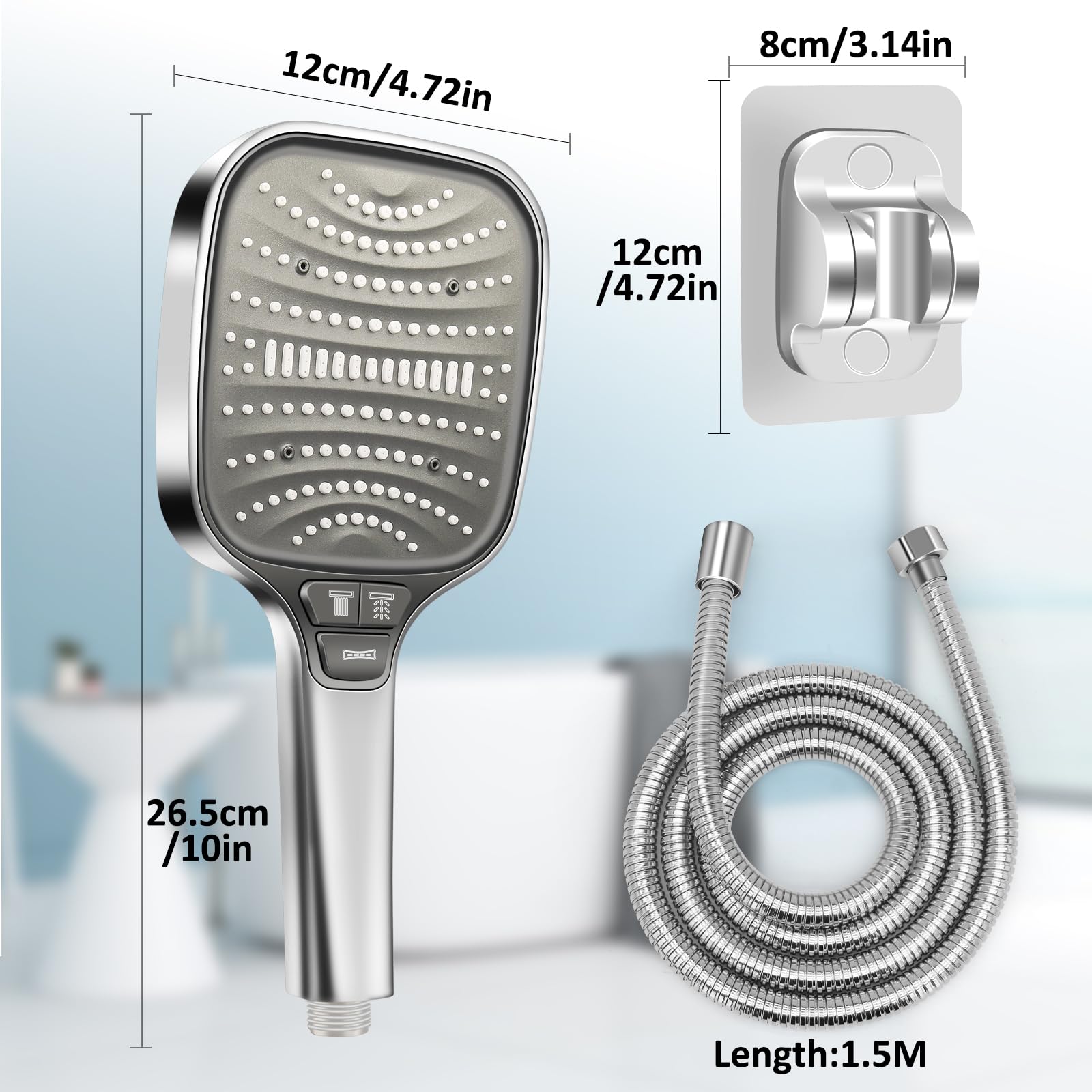 Pommeau Douche Anti-Calcaire Filtre 15 Étapes Tuyau 1.5M Économie Eau Haute Pression 3+1 Jets Pommeau de Douche Economie D'eau, Anti Calcaire Douchette avec Filtre, Haute Pression Pomme avec... Douche Pression Renforcée Argent Pommeau De Douche Haute Pression Anti-Calcaire, 120mm Grand Pommeau Douche Avec 8 Modes Economie Deau Douchette Salle De Bain A Debit Renforce Compatible Avec Tuyau Standardnoir 92125430 Tuyau Douche 【Pommeau de douche haute pression 8 modes】Profitez d'une expérience de douche luxueuse avec 8 modes réglables : pluie, pulsation, brouillard, jet concentré et combinaisons innovantes (pluie + pulsation, pluie + brouillard, etc., ). Parfait pour les familles ou ceux qui cherchent un débit puissant même en basse pression. Pommeau de douche pression anti calcaire - Douchette douche salle de bain - Economie d'eau - 6... La surface chromée résistante aux rayures prévient la corrosion et les taches. 【Compatibilité universelle】Ce pommeau de douche avec tuyau standard (raccord G1/2) s'installe en quelques secondes sans outil, adapté à la plupart des systèmes de douche. La poignée antidérapante et le bouton de sélection intuitif rendent son utilisation agréable au quotidien. 【Design ergonomique & haute qualité】Fabriqué en ABS renforcé, léger mais ultra-résistant.