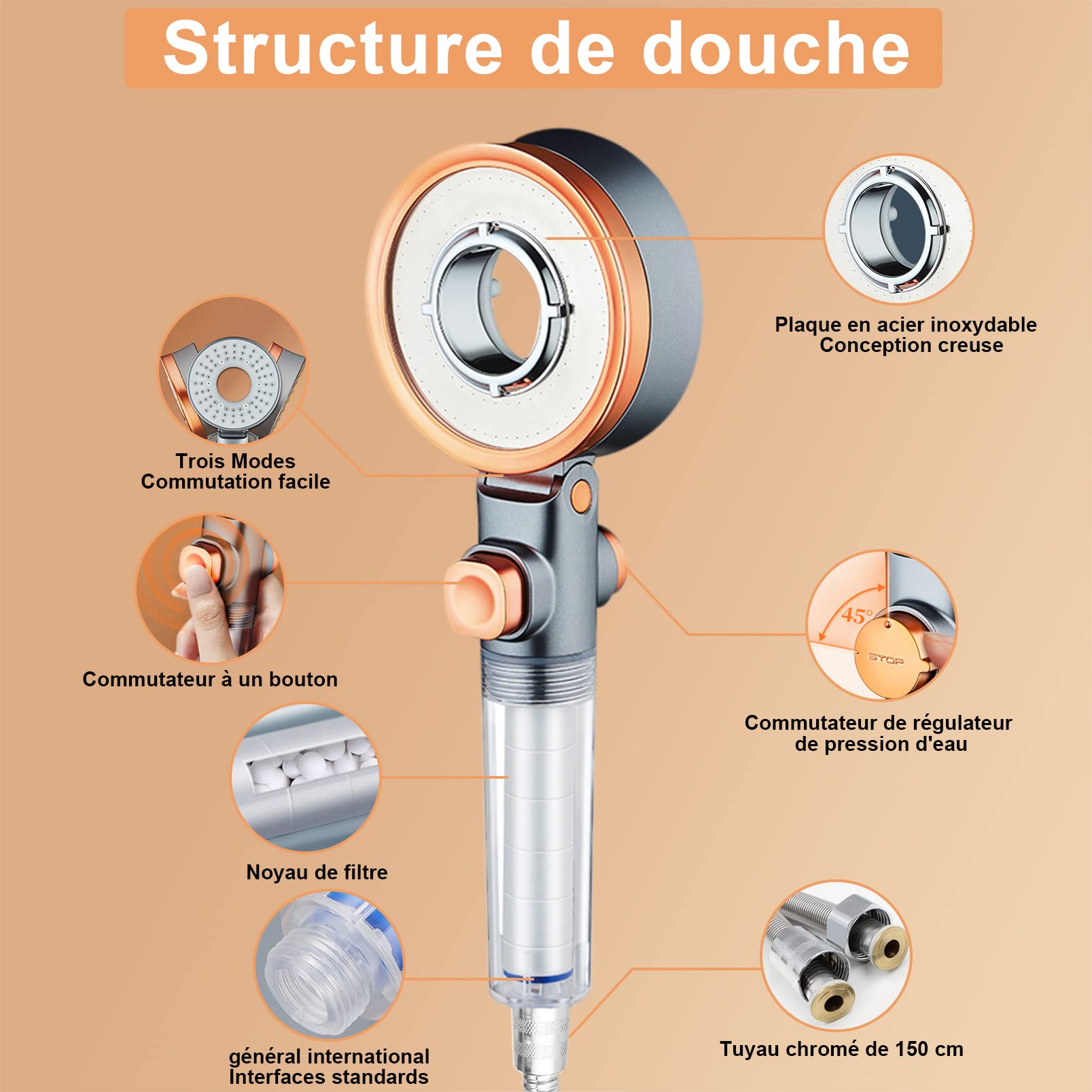 Vivez une douche surpuissante, comme sous une pluie torrentielle ! Notre filtre intégré absorbe efficacement ces substances nocives, offrant une protection douce pour vous et votre famille. Pommeau Anti Calcaire ABS Pommeau De Duche Haute Pression, Pommeau De Douche Haute Pression Avec Pommeau Anti-calcaire Filtres Remplaçables Pomme de douche économe en eau - Ce puissant pommeau de douche économe en eau est fabriqué en ABS de haute qualité. Le pommeau de douche est équipé d'un filtre anticalcaire qui a un effet antibactérien et minéralisant sur l'eau, un pH neutre et une eau plus douce Facile à installer et durable - Livré avec un flexible de 1,5 mètre. Pommeau de douche haute pression - Notre puissant pommeau de douche utilise la technologie de pression d'air pour augmenter la pression de l'eau. Un rappel de remplacement du filtre garantit la qualité de l'eau. Filtration 3 couches, efficace et performante - Nous fournissons 6 filtres de rechange supplémentaires et recommandons de les remplacer tous les trois mois. Spécifications du produit Nom du produit : Ensemble de douche d'appoint Le connecteur universel s'adapte à la plupart des barres et tuyaux de douche standard, facilitant ainsi son utilisation et son transport pour les locataires. Notre pommeau de douche avec tuyau sous pression, soigneusement conçu, transforme votre salle de bain en spa personnel. Il est bien plus durable que les pommeaux de douche en métal ordinaires et conservera son éclat neuf après des années d'utilisation. 3 types de jets - Il suffit de tourner le bouton situé à l'arrière du pommeau de douche economie deau pour basculer facilement entre les 3 types de jets : pluie, mélange et jet vaporisant, pour un bain agréable et une expérience merveilleuse pour vous et votre famille Installation rapide en un seul geste : Aucun outil ni technicien requis ! Ce pommeau douche anti calcaire est un choix judicieux pour améliorer votre qualité de vie. Protéger la santé de votre famille Le chlore résiduel, la rouille, le limon et autres impuretés présents dans l'eau du robinet peuvent non seulement endommager votre peau et vos cheveux délicats, mais l'inhalation prolongée de vapeurs d'eau chlorées peut également nuire à votre santé. Pommeau De Douche Anti Calcaire Avec 15 Étapes Filtre Et Avec Tuyau 1... Profitez d'une expérience spa au quotidien Après une journée bien remplie, un bain chaud et rafraîchissant est le moyen idéal de se détendre. Matériaux ABS de haute qualité : Le pommeau de pommeau de douche anti calcaire est entièrement fabriqué en ABS haute résistance, résistant à la rouille, à la corrosion et à la chaleur. Le tube intérieur du tuyau est étanche et empêche son éclatement. Lot de 4 filtres de douche universels à 20 étapes - Purificateur d'eau dure - Élimine le chlore, les métaux lourds, le fer, les autres sédiments, l'adoucisseur d'eau avec haut rendement Grâce à une eau dense et puissante, il vous offre une expérience de douche pluie complète et confortable. Dites adieu au faible débit d'eau ! Six filtres sont inclus, permettant une utilisation de 9 à 12 mois, pour une utilisation simple et économique. Pommeau de douche haute pression avec tuyau de 1,5 m - Pommeau de... Modes d'eau : 3 (Pluie/Massage/Mixte) Raccord : Filetage standard universel G1/2 (convient à la plupart des foyers) Installation à mains nues en seulement 60 secondes. Son filetage universel G1/2 permet de le connecter rapidement à tout système de douche standard en quelques minutes