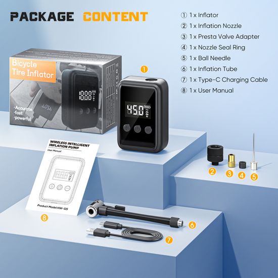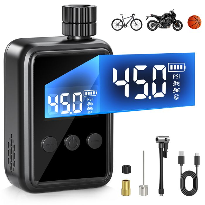 Ce pompe velo electrique fait office de mini compresseur velo polyvalent – pour vos équipements sportifs ou du quotidien. Gonfleur Velo Pompe A Velo Electrique, Mini Pompe Velo 150Psi Avec Manomètre Numérique, Pompes À Vélo Avec Pompe VTT Route Arrêt Automatique EXTOLINK Mini Pompe vélo Electrique, Max 150 PSI Pompe à vélo avec Manomètre numérique, 20-Sec Gonflage Mini compresseur velo avec arrêt Automatique Trachée à 360° pour Velo Route, VTT Top 5 Meilleures Mini Pompe Vélo Route ou VTT en 2023 【Batterie Longue Durée 2000mAh = Liberté Totale】Ce mini pompe velo rechargeable gonfle jusqu’à 8 pneus à plat ou 20 pneus sous-gonflés. 【Précision professionnelle jusqu’à 150 PSI】Le capteur intelligent arrête automatiquement le gonfleur velo dès la pression cible atteinte, évitant les éclatements. 20-Sec Gonflage Mini compresseur Velo avec arrêt Automatique Trachée à 360° pour Velo Route, VTT. 4,4 sur 5 étoiles 97. 1 offre à partir de 37,87 €. Afficher... Débit d'air de 11L/min – parfait pour les urgences en randonnée ou avant une course. Son tuyau intégré rotatif à 360° permet un gonflage sous tous les angles, idéal pour velo route, VTT et même vtt accessoires. Réglez la pression (3-150 PSI) pour velo route, VTT, scooters ou même motos légères. Pompe à Vélo Électrique,MIOLOE ,Mini Pompe Vélo Numérique LCD,3MODES Plus besoin de transpirer pour gonfler vos pneus en plein trajet 【Tout-en-un : l’allié Ultime des Cyclistes】Écran numérique clair (pression en temps réel + cible), valves Presta/Schrader incluses, et adaptateurs pour ballons.