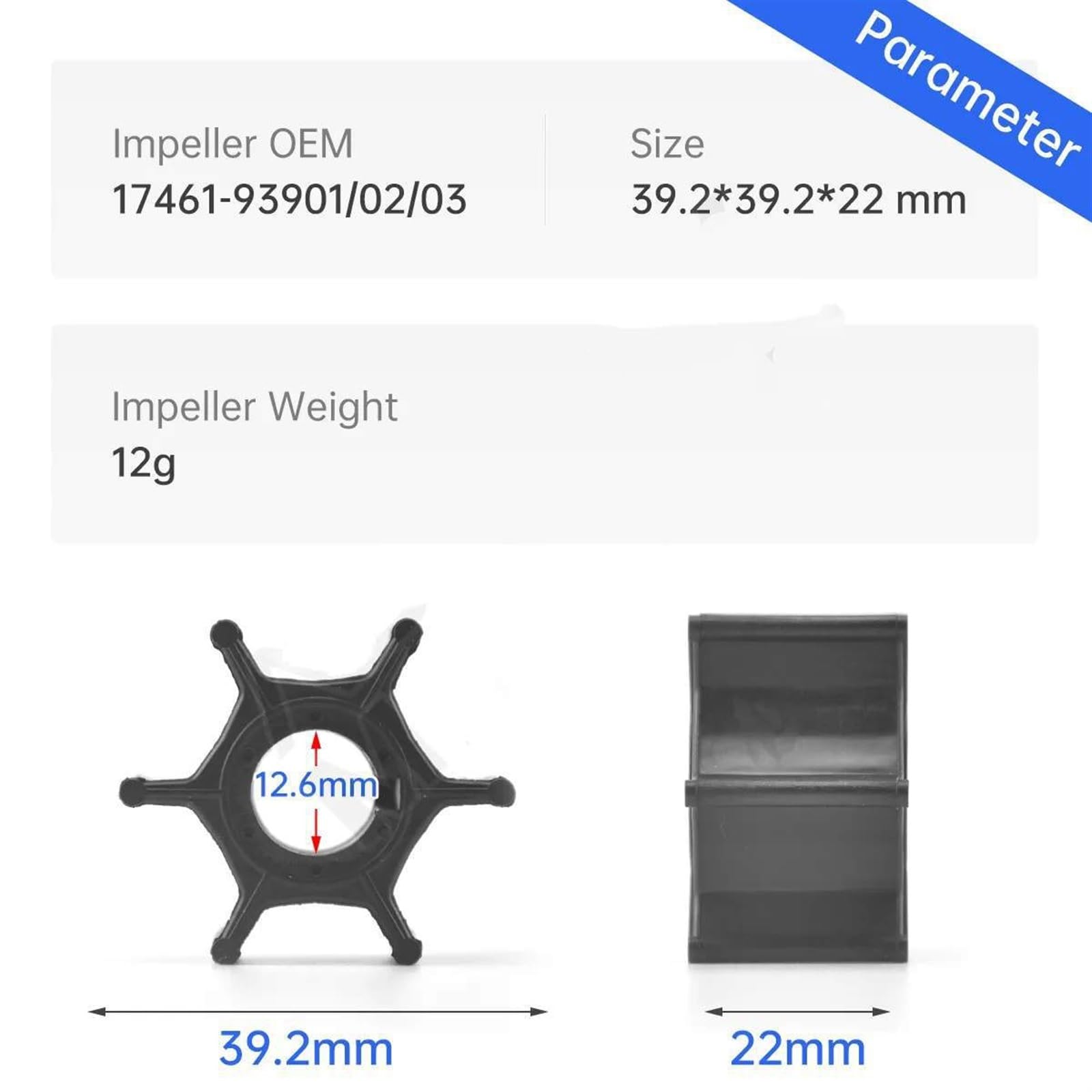 POMPE À EAU roue convient Suzuki 17461-93J00 18-3035 200HP 225HP 250HP Pièce Hors-bord DT DF Remplacement Turbine De Pompe à Eau 17461-98501/2/3 Compatible Avec Suzuki DT2 DT2.2 Pièce Détachée Moteur Marin Turbine 90 à 225 cv Turbine pompe à eau moteurs hors-bord SUZUKI MARINE Rupture de stock temporaire / plus fabriqué / vendu sur commande uniquement, nous consulter par mail 51,02 Diamètre global de la turbine externe : 40,07 mm Achetez Briny River Turbine de Pompe à Eau 17461-98501/2/3 Compatible avec Suzuki DT2 DT2.2 DT3.5 DT4 DT5 DT6 DT8 DF4 DF6 Hors-Bord Impulsores de bombas de... Remplacement OEM : Conçu pour remplacer les numéros de pièces OEM 17461-98501, 17461-98502 et 17461-98503., Gamme de compatibilité : Compatible avec les moteurs hors-bord Suzuki, notamment DT2 DT2., 2 DT3., 5 DT4 DT5 DT6 DT8 (2 temps) et DF4/DF6 (4 temps). Diamètre de l'insert d'arbre interne : 9,7 mm