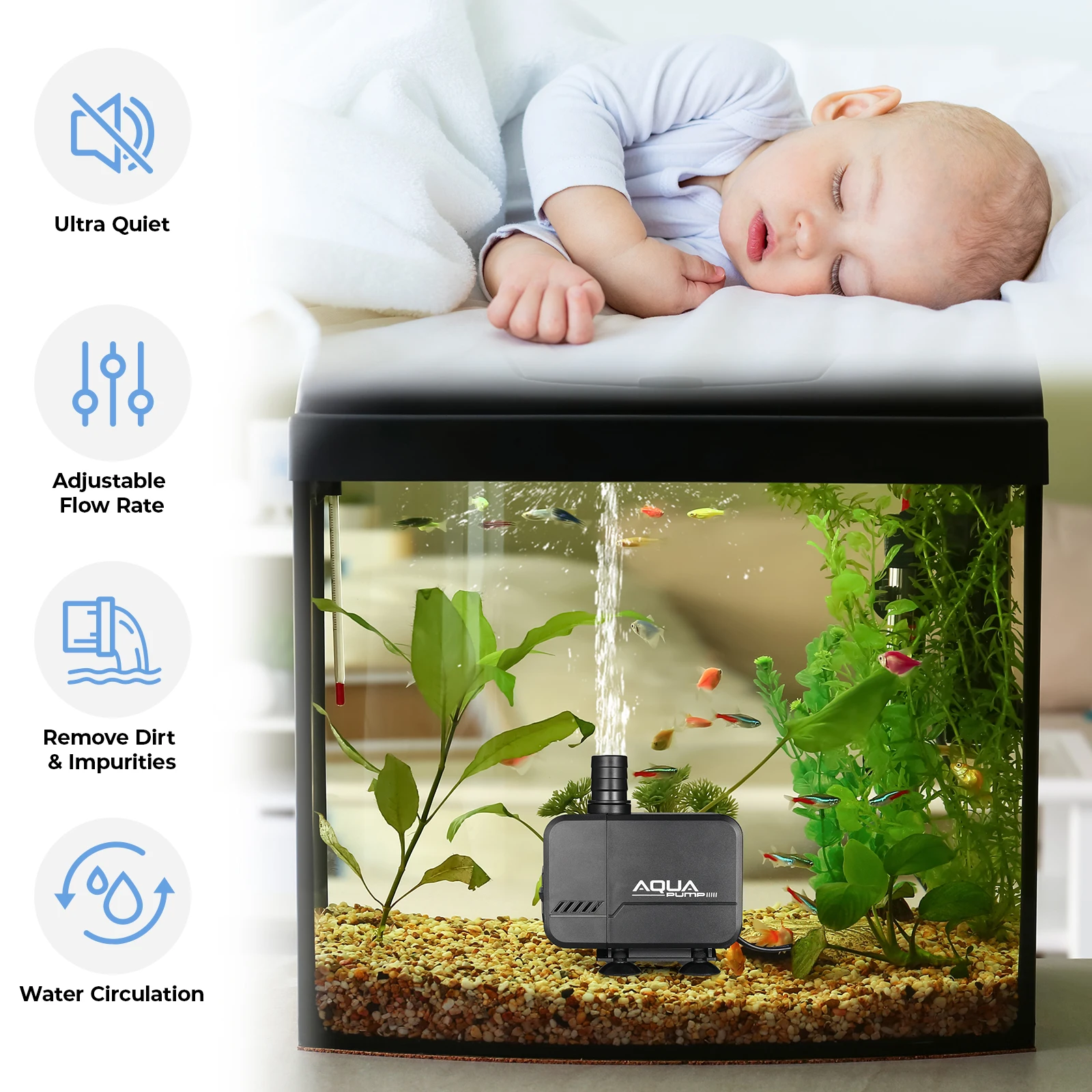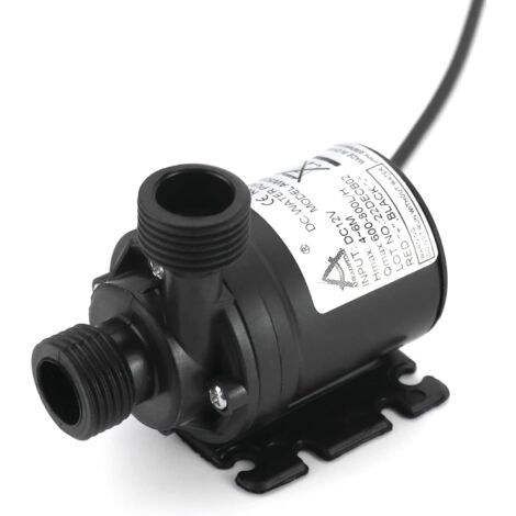 Contenu de la livraison : 1 × Pompe à eau 12V 2 x Adaptateurs de tuyaux d'eau 2 x Colliers de serrage en acier inoxydable 2 x Blocs de pinces à rétreindre étanches Noir 12v Mini moteur Portable sans balais 12V 24V cc, pompe à eau Faible consommation d'énergie, faible niveau sonore, moins de <35dB, pour vous offrir un environnement calme. Pompe Submersible Pompe à Eau DC 12V Submersible Sans Balai 800L / H 5M Pour Système De Pompe à Eau 12V -- Il convient de noter que cette pompe à eau n'est pas adaptée à un fonctionnement prolongé sans eau. Caractéristiques: Diamètre de sortie de la pompe à eau : diamètre intérieur de 8mm; Diamètre d'entrée de la pompe à eau : diamètre intérieur de 13mm; Débit maximal : 800L/h; Tension de la pompe à eau : DC 12V/20W; H-Max 6m; Type de moteur : Sans balais, isolé magnétiquement; Niveau sonore <35dB; Classe d'étanchéité : IP68 (submersible). QWORK® Pompe a Eau 12v 800l/h 5m, Pompe à Eau Submersible sans Balai, pour la Circulation de l'eau de la Piscine de Fontaine Solaire d'aquarium d'étang de... Notre petite pompe à eau offre des débits stables en continu et est un bon choix pour les aquariums de taille moyenne, les petits étangs, les fontaines, les œuvres d'eau, les jardins, l'aquaponie, l'aquaculture, les douches portables, les systèmes hydroponiques, etc Étanche: Le Mini Pompe à Eau est coulé avec de la résine époxy et isolé complètement du rotor pour résoudre le problème de fuite lors d'une immersion prolongée., Complètement étanche. La Pompe à Eau 12V est une mini pompe submersible équipée d'un moteur sans balais, offrant un débit maximal de 800L/h et une hauteur de refoulement de 6m. PERFORMANCES EXCEPTIONNELLES: Cette pompe à eau submersible... Sans balais, pas de pollution, longue durée de vie Taille compacte, haute efficacité, faible niveau sonore. Résout également une série de problèmes tels que le blocage et le démarrage soudain de la pompe dans des environnements complexes La pompe à eau doit être immergée dans l'eau, ou si elle est raccordée à une conduite, la surface de l'eau externe doit être située en dessous de la buse d'entrée de la pompe à eau. Convient pour une utilisation dans l'eau et sur terre (en utilisation extérieure, la position d'installation doit être sous la surface du liquide)