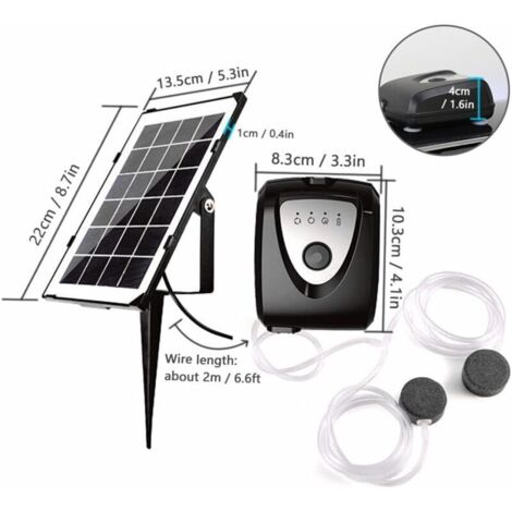 Il est également compact et facile à installer. SuperFish Pond Air Kit 1 : kit d’aération complet étanche aux projections pour bassin Le SuperFish Pond Air Kit 1 est un kit d’aération complet. Il contient une pompe à air avec un débit de 96L/H ainsi que tout le matériel ce qui le rend prêt à l’emploi. Le kit ne dispose pas de boîte mais est étanche aux projections... Améliore la qualité de l'eau : Si vous voulez garder votre bassin sain et clair, cet oxygénateur solaire est un excellent choix. En raison de différentes mesures manuelles, veuillez permettre une différence de taille de 1 à 2 cm. Pompe Circulation Eau Solaire Pompe à Oxygène D'aérateur D'étang Solaire Avec Tuyau D'air Et Fontaine Daerateur Daquarium De Flotteur De Bulle De Pierre 92311593 Aération Silencieuse Poissons Idéal pour l'alimentation en oxygène des bassins : cet oxygénateur solaire fournit de l'oxygène aux poissons sauvages et aux aquariums, avec un faible bruit inférieur à 60 dB. Description du produit Aérateur Solaire pour Bassin Aération simple : cet oxygénateur solaire pour bassin s'appuie sur le soleil pour fournir de l'air à l'eau. Il peut améliorer la qualité de l'eau en augmentant le niveau d'oxygène dissous, en réduisant la croissance des algues et en empêchant les poissons de suffoquer. Il fonctionne bien pour n'importe quel environnement aquatique, des aquariums aux aquariums en passant par les petites piscines. Caractéristiques: Type: silicium monocristallin Processus de production: animal de compagnie givré Tension de travail: 5V Puissance de sortie: 2,5 W Courant de travail: 320mA Type de pompe à air: petite pompe à air DC Pompe Longueur du câble imperméable: environ 3 mètres / 9,84 pieds Tension de notation 3., 5 V Bruit: moins de 60 dB Débit d'air maximum: 0,6 L / min Température de l'environnement de travail: -10 ~ 45 Profondeur maximale de l'eau: environ 1 m / 3,28 pieds Taille du produit: environ 14., 9x9., 5x0., 24cm / 5., 87x3., 74x0., 09 pouces Taille de la boîte intérieure: environ 38x30., 5x10cm / 14,96x12., 01x3,94 pouces Poids brut du produit: environ 0,45 kg Liste de colisage: 1 pièces * Panneau solaire 1 pièces * Pompe à air 1 pièces * stand 1 pièces * Sac accessoire 1 pièces * Manuel d'instructions Note: En raison de différents paramètres d'éclairage et d'écran, la couleur de l'élément peut être légèrement différente de l'image. Il s'agit d'une mini pompe à air d'aquarium qui délivre un flux d'air uniforme et transparent de 0,6 L/min. Oxygénateur solaire Air-S pour bassin extérieur, état neuf, made in Germany, panneau solaire et sa fixation, vis et cheville, tuyau souple, bulleur, notice en français, pompe à air. Le corps de la pompe à air solaire se place à l'extérieur du bassin, en position surélevée par rapport à celui-ci. Le Améliorez vos éléments aquatiques avec ce diffuseur solaire pour étang, équipé d'une pierre à bulles pour une aération efficace et un fonctionnement silencieux, adapté aux aquariums, petits bassins et bacs à poissons. C'est aussi un cadeau attentionné pour vos amis et votre famille qui aiment le j Aérateur de bassin solaire 3 W 6 V Pompe à oxygène solaire