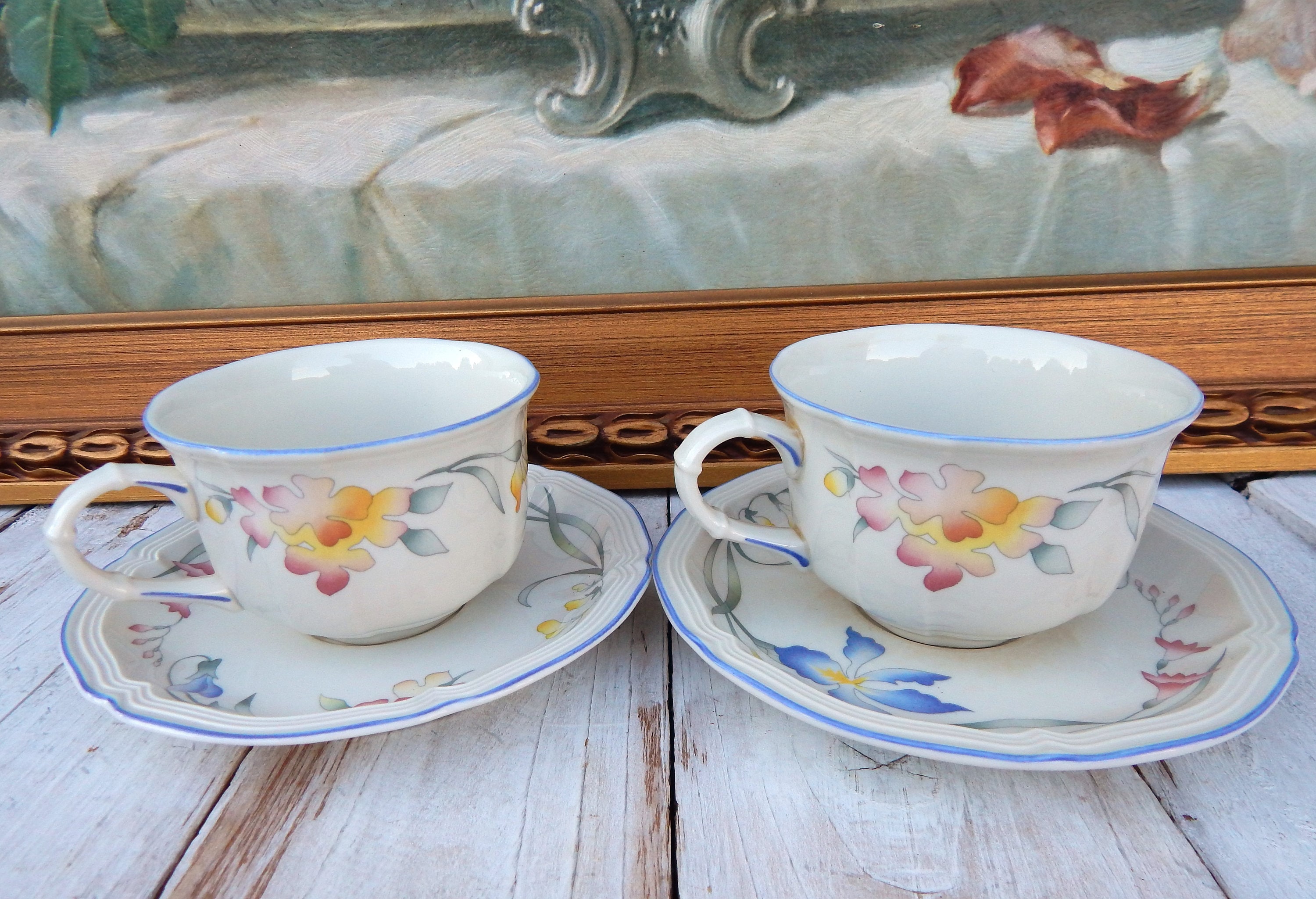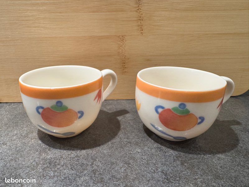Tasse à expresso et soucoupe Villeroy & Boch Botanica, vaisselle vintage, cadeau parfait - France Lot de 2 tasses à expresso Matériau : porcelaine fine., Passe au lave-vaisselle., Passe au lave-vaisselle , Passe au micro-ondes , Élégant et pratique Tasses Multicolores Lave-vaisselle Tasse Dejeuner Porcelaine Villeroy Et Boch Tasse Et Soucoupe Porcelaine Anglaise - Motif Fleurs Des Champs - 350ml - Multicolore Vintage Tea Cup Lot De Deux Tasses Café élégantes Micro-ondes Un joli ensemble de 2 tasses à expresso et soucoupes en porcelaine, réalisé par Villeroy & Boch de la série Geranium. Dimensions : les tasses mesurent 5,5 cm de hauteur et 6,5 cm, les soucoupes mesurent 13,5 cm. Lensemble est en bon état, sans éclats ni délié. Vendu par lot de 2, non individuel Lot de tasses et sous tasses, décor Paloma Picasso / rue royale...