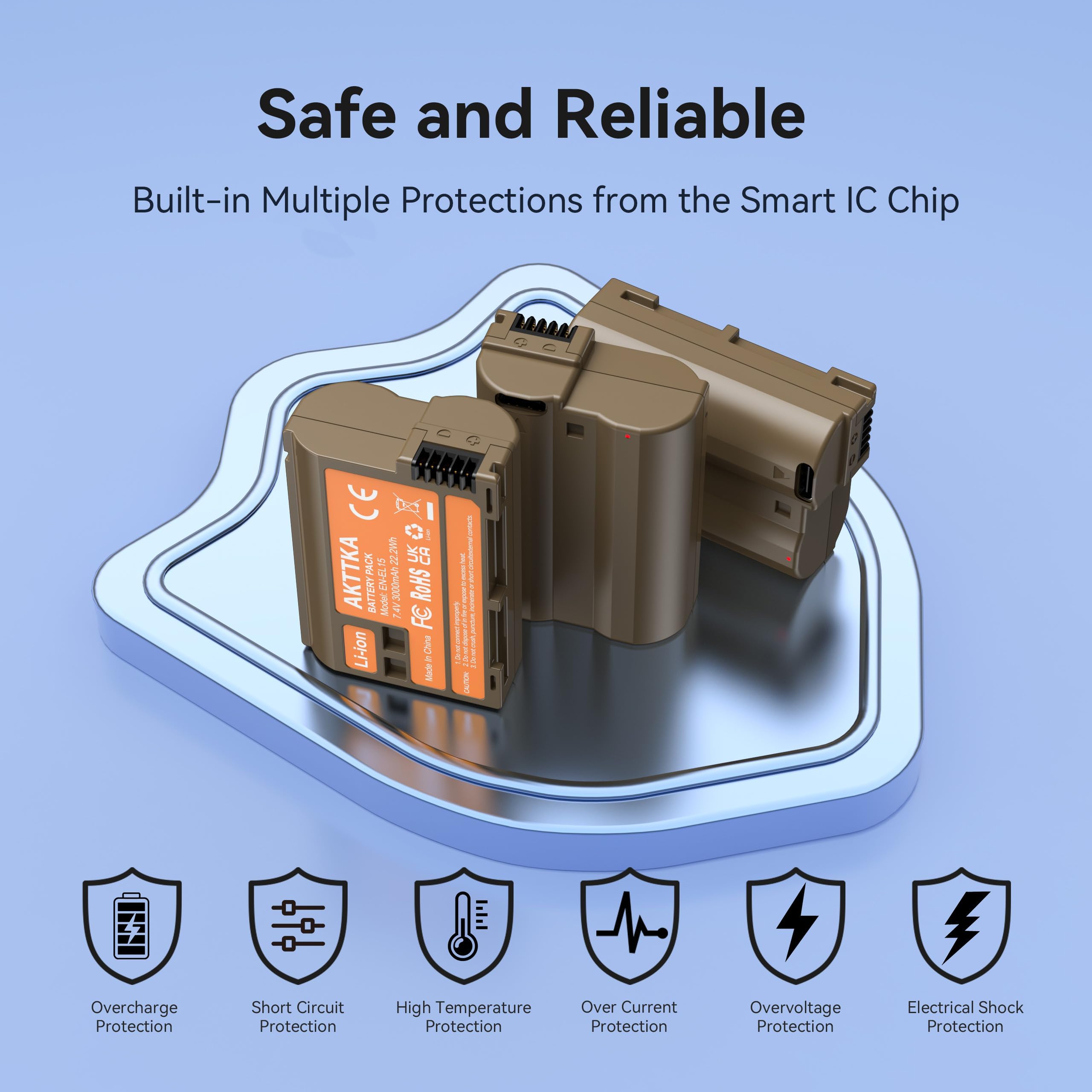 Elle se démarque des produits ordinaires, ajoutant une touche de raffinement et de professionnalisme à votre équipement photo. 【Grande Capacité 3000mAh – Autonomie Prolongée】Chaque batterie AKTTKA EN-EL15C dispose d’une capacité élevée de 3000mAh, fournissant jusqu’à 1000 prises de vue et 2 à 3 heures d’enregistrement vidéo. Batterie Appareil Photo Nikon Charge USB-C ENEGON EN-EL15/EL15c Batteries à Charge Directe Pour (2100mAh) Avec Port De Charge Type C Pour Nikon Z5,Z6, Z7,Z8, D7100, D750, D7000, D7200, D600,D610, D880, D810,D810a,D800,D850 Nikon Z7 Acerca de este producto Compatibilidad Total con Cámaras Nikon: La batería AKTTKA EN-EL15C/EN-EL15 es totalmente compatible con Nikon Z8, Z7, Z6, Z5, Z6II, Z7II, Z6III, D780, D850, D750, D800, D810, D810A, D800E, D500, D7500, D7200, D7100, D7000, D610, D600 y más. Ideal para fotógrafos que buscan una batería fiable para su cámara Nikon. Alta Capacidad de 3000mAh - Larga Duración Que vous capturiez des photos ou tourniez des vidéos, cette batterie vous garantit une alimentation longue durée et stable, afin que vous puissiez rester concentré sur votre créativité sans craindre de manquer d'énergie. Avec quelles caméras cette batterie est-elle compatible ? La batterie AKTTKA EN-EL15C est compatible avec les appareils Nikon Z8, Z7, Z6, Z5, Z7II, Z6II, Z6III, D780, D500, D600, D610, D750, D800, D800E, D810, D810A, D850, D7000, D7100, D7200, D7500 et d’autres modèles Nikon. Cette batterie est-elle sécurisée ? Oui, la batterie est équipée de protections contre la surcharge, la surchauffe et les courts-circuits. Le pack inclut 3 batteries EN-EL15C/EN-EL15 de 3000mAh, 1 câble USB-C 2-en-1, un support client disponible 24/7 et une garantie de 12 mois. Les voyants LED indiquent clairement l’état de charge : rouge pendant la charge, vert une fois pleine. Quelle est la capacité de la batterie ? Chaque batterie AKTTKA EN-EL15C dispose d'une capacité de 3000mAh, offrant une autonomie de 1000 photos ou 2 à 3 heures d'enregistrement vidéo. Idéale pour un usage quotidien comme pour les prises de vue professionnelles. Les voyants LED indiquent l'état de charge : rouge pendant la charge, vert lorsque la batterie est pleine. Pro EN-EL15c 2400mAh Pack de Batteries Compatible avec Nikon Z5 Z6 II... 【Design Élégant et Unique – Coloris Marron Distinctif】La AKTTKA batterie EN-EL15C ne se contente pas d'exceller en performance : son design marron élégant lui confère une identité visuelle unique. 【Sécurité Renforcée – Utilisation en Toute Confiance】Équipée de protections intégrées contre les surtensions, la surchauffe et les courts-circuits, la batterie AKTTKA EN-EL15C garantit une utilisation sûre. Comment charger la batterie ? Le câble 2-en-1 USB-C inclus vous permet de charger simultanément deux batteries EN-EL15C. SMALLRIG EN-EL15C Batterie 2400 mAh USB-C pour Nikon Z6 III, Zf, Z8, 2,5 H Batterie Entièrement Chargée pour Nikon Z7, Z6, Z7 II, Z6 II, Z5, D850, D810, D810A, D780, D750, D610