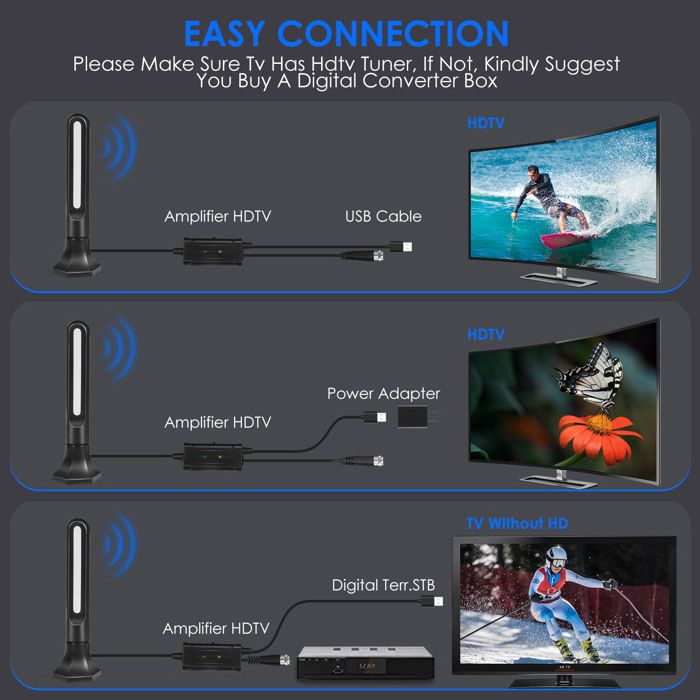 Antenne Tv Intérieur Antenne TV Intu00e9Rieur Puissante, Nouveau Pour 2025 Intu00e9Rieur Puissante, Cu00e2Ble Coaxial De 5m, Ru00e9Ception Longue Distance 500km, 360 Degru00e9S Antenne Tnt Antenne Tnt Intérieur Antennes Tnt Antenne TV Intérieure TNT HD 4K - Portée 900km Amplifiée Pour Chaînes Locales Antenne Amplifiée Tv Antenne Amplifiée 360 Comment installer une antenne tv intérieure ? - Service Antennes Notre antenne TV se connecte directement à votre téléviseur HD. TYPE 1 - Mini antenne TV intérieure 4K avec gain élevé, TV numérique HD... Son design léger et sa couleur noire tendance s'harmonisent parfaitement avec votre décoration et votre environnement, tout en étant agréables et faciles à installer. Elle est livrée avec un câble coaxial de 3 m, ce qui signifie que vous pouvez cacher l'antenne derrière votre téléviseur ou la placer sur une table/fenêtre/mur ou où vous le souhaitez