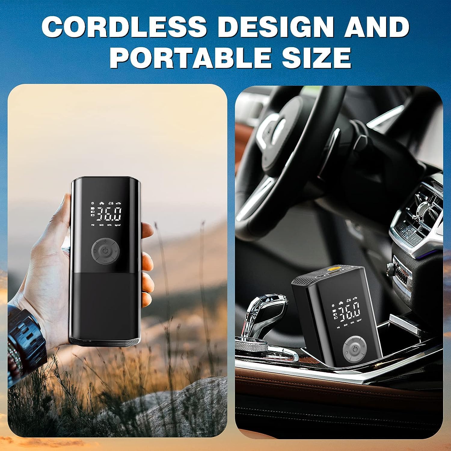Contactez-nous : si vous avez des questions, cliquez sur « Poser une question » dans notre magasin ou sur « Contacter le vendeur » dans la section « VOTRE COMMANDE ». Gonfleur Pneu Voiture Moto Vélo Pompe à Air électrique, Portable Avec Batterie 6000 MAh, 150 PSI - Compresseur Mobile Avec écran LCD Numérique - Pour Voiture, Moto, Vélo Compresseur Portable 150 PSI - Puissance d'étourdissement : la pompe à air électronique portable offre une pression maximale de 150 PSI et un flux d'air de 32 l/min. Compresseur d'air portable, mini pompe à vélo électrique 150 PSI avec... Conçu pour votre voyage. Écran LCD et lampe de poche LED : la pompe à pneu électrique dispose d'un grand écran LCD avec affichage numérique, qui est plus clair et plus lumineux. Mini Pompe À Air Portable 6000 Mah 150 Compresseur Électrique Mini... Avec un poids de seulement 450 g (taille : 13,5 x 4,6 x 9 cm), si compact et léger sous un design minimaliste pour se glisser facilement dans votre poche, porte-vélos, sac à dos et voiture. Ultra légère : la pompe à air électrique pour vélo est équipée d'un cylindre en alliage de haute précision, ce qui permet de gonfler rapidement vos pneus. La lampe de poche dispose également de trois modes (éclairage, stroboscope, SOS) éclairage d'urgence sur pompe à air électrique, adaptée aux urgences sur le bord de la route et la nuit. Compresseur à Air Portatif, 6000mAh Mini Pompe à Air, compresseur velo La pression gonflable maximale est de 150 psi / 10,3 bar, pas de gonflage manuel fastidieux n'est nécessaire. Achetez en toute confiance : si la pompe à vélo électrique présente des problèmes de qualité, un service d'échange gratuit pendant 30 jours (2 fois), une garantie de qualité limitée de 365 jours et un service 24 heures.