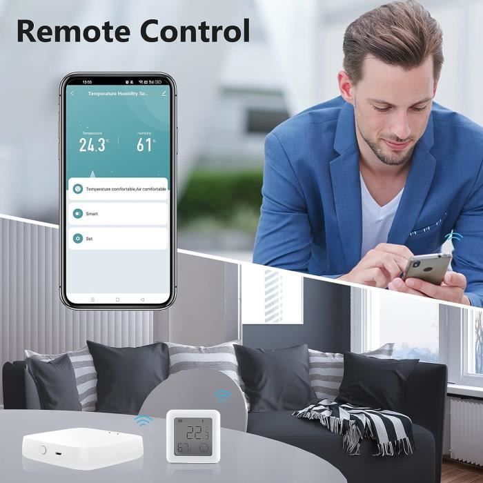 Couverture jusqu'à 120 Mètres Alerte via l'Application Lot de 2 thermomètres hygromètre d'intérieur Bluetooth – Humidimètre... SwitchBot Hub Mini est requis (vendu séparément). Prend en charge plusieurs méthodes de calibrage des données. Affichage à Grands Chiffres Portée jusqu'à 120m (sans obstruction), la connectivité Bluetooth vous permet de vérifier les données sur l'application à tout moment. Installation facile : ajoutez-le à l'application SwitchBot et retirez la protection d'écran, votre thermomètre est prêt à l'emploi. Vous pouvez être alerté via votre téléphone à portée Bluetooth. Shelly Plus H≈T | Capteur de tepérature et d'huidité connecté | Wi-Fi Fonctionne mieux avec l'appareil SwitchBot Hub Alertes push à portée Bluetooth. Surveillez votre environnement domestique avec l'application SwitchBot. csv pour une analyse plus détaillée de votre environnement. Nous gardera les informations de l'utilisateur privées. Les changements d'humidité et de température sont signalés toutes les 4 secondes, ce qui garantit que votre environnement reste actuel et précis. Si vous avez des questions pendant l'utilisation, veuillez signaler le problème via Feedback dans votre profil SwitchBot App. Intégration - Avec le hub SwitchBot Hub, l'appareil de mesure fonctionne avec Alexa, Google Assistant, Siri, IFTTT et d'autres produits SwitchBot pour l'automatisation domestique. L'autocollant supplémentaire magnétique 3M est fourni dans l'emballage, ce qui permet de le placer n'importe où. Lorsqu'une condition de température ou d'humidité est remplie, allumez votre climatiseur et l'humidificateur intelligent SwitchBot. Collecte de données : une distance de connexion de 394 pieds (sans obstacles) vous permet d'afficher rapidement et clairement la température et l'humidité de l'air chaque année, mensuellement ou toutes les heures. Vous alerter lorsque la lecture est hors de portée avec le compteur chambre de bébé. Thermomètre Connecté Alexa Thermomètre Hygromètre Portable Avec Point De Rosée - Triangle Outillage Domotique Environnement Maison La fonctionnalité Alertes sur les appareils iOS nécessite des autorisations de localisation. Parfait pour les cuisines, les serres, les réfrigérateurs, les valises de guitare, les caves, les greniers, les caves, les conteneurs de reptiles et les salles de fuite. Profitez de jusqu'à 36 jours de stockage de données embarquées et de 730 jours d'espace de stockage dans le cloud. Le thermomètre d'ambiance fournit des lectures de température et d'humidité en temps réel avec un affichage numérique agrandi pour une lecture facile. Capteur de Haute Précision L'application fournit des filtres quotidiens/hebdomadaires/mensuels pour suivre les changements de température et d'humidité. Notifications push : notre hygromètre prend désormais en charge les mesures du point de rosée et du VPD avec une humidité absolue ainsi que des mesures classiques de température et d'humidité qui peuvent être utilisées comme conditions de scène. Plus de plaisir avec l'écosystème SwitchBot Capteur suisse précision ±0,2 °C et ±2% RH · Affichage LCD XL 3 pouces très lisible · Connectivité Bluetooth portée jusqu'à 120 m · Stockage et export CSV 68 jours... Vous pouvez demander comme Alexa, quelle est la température du salon ? Les données peuvent être exportées sous forme de fichier . Avec son dos magnétique, sa plaque métallique 3M et son support, vous pouvez le placer n'importe où.