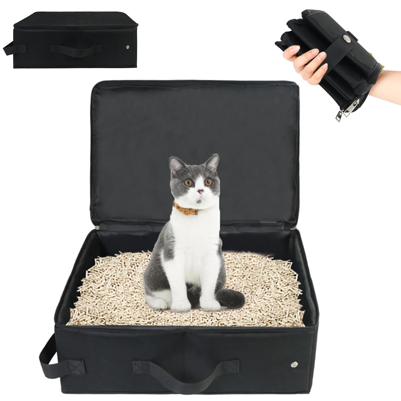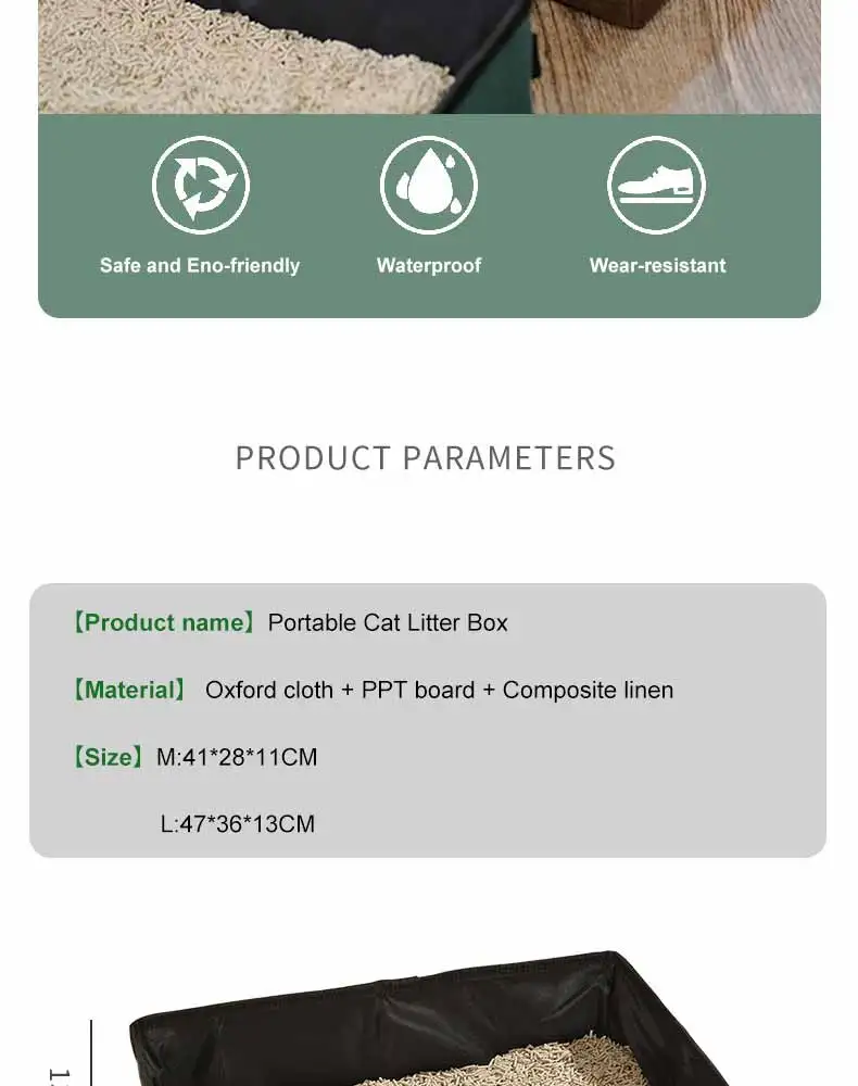 Grande capacité : notre bac à litière pliable de voyage mesure 40 x 30 x 13 cm lorsqu'il est entièrement déplié et offre un intérieur spacieux. Pliable : notre litière pliable pour chat dispose d'une fonction de pliage super pratique qui vous permet de la plier et de la déplier facilement en quelques clics. Pelle Litiere Chat Boîte à Litière De Voyage Portable, Bac à Litière Pliable Avec Couvercle Et Poignee Litiere Pliable Legere Standard Adaptee Au Voyage Pour Chats Gris 88641035 Litiere De Voyage Pour Chat Bac à Litière Pliable Portable pour Chat, Litière pour Chat de Voyage... En voyage, la litière de voyage se replie rapidement à une taille compacte et se glisse facilement dans un sac à dos ou une valise sans prendre de place supplémentaire. GOEDCH Bac à litière pliable pour chat avec couvercle : étanche et portable pour les voyages avec bol pliable et pelle pour voyage, voiture, camping en plein air, noir Caracteristiqu 1., Design du couvercle : cette litière de voyage pliable pour chat dispose d'un design de couvercle bien pensé et la fermeture éclair cryptée reste bien en place, ce qui empêche efficacement les odeurs et la poussière de pénétrer et empêche les objets de tomber dans le bac, ce qui rend l'utilisation extrêmement pratique., 2., Pratique : cette litière de voyage pour chat est facile à utiliser, petite et légère, se range facilement et ne prend pas de place, ce qui permet de transporter la litière pour chat très pratique en voyage., 3., Accessoires gratuits : cette litière pliable pour chat est livrée avec des accessoires pratiques, dont une gamelle pliable pour animaux de compagnie, facile à plier, robuste et résistante aux chutes, et une pelle spéciale pour répondre à différents besoins. Contenu de l'emballage : 1 bac à litière pliable pour chat., 1 bol pliant., 1 pelle. La litière pliable pour chat est adaptée à différents scénarios, par exemple à l'intérieur, à l'extérieur ou dans la voiture. Le nettoyage quotidien est encore plus facile. Caractéristiques du produit : Coloris : noir. Ainsi, votre chat peut s'étendre dans la boîte et tourner librement et profiter d'un confort sans entrave lors de la promenade quotidienne en chaise ou tout simplement pour un peu de mouvement. Dimensions plié : 20 x 18 x 8 cm. Avec couvercle : Son couvercle empêche la litière de salir le sol.Tissu Oxford : Fabriqué en tissu Oxford, il est résistant et ne se déchire pas facilement.Facile à nettoyer : Facile à nettoyer, pas besoin de s'inquiéter du nettoyage du bac à litière.Conception pliable : Facile à transporter, convient pour l'extérieur, le camping, les voyages et autres occasions.Utilisations... Il suffit de le rincer à l'eau, les taches sont rapidement éliminées et de l'essuyer avec un chiffon, et la litière portable pour chat sèche en un tour de main. Large application : cette litière pliable de voyage peut non seulement être utilisée comme litière de voyage, mais aussi comme sac de rangement. Matériau : tissu Oxford 600D et doublure PEVA. FAS Bac à litière portable de voyage pliable litière pour chat noir