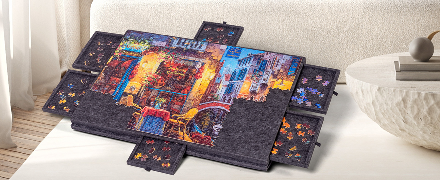 LÉGER ET PORTABLE : Table de puzzle fabriquée en feutre de haute qualité pesant seulement 2,4 kg (5,3 livres), elle est 35 % à 50 % plus légère que la planche de puzzle traditionnelle en bois et peut être facilement transportée n'importe où. Lavievert Plateau de puzzle 2 en 1 réglable pour adultes, table de puzzle inclinable portable, plateau en bois avec surface antidérapante, jusqu'à 1000 pièces En outre, ils protègent les puzzles finis contre les rayures pendant le transport ou le stockage Table De Puzzle Lavievert Planche De Puzzle Portable En Feutre Avec 6 Plateaux De Tri Pour Jusqu'à 1 000 Pièces (kaki 6000 Pièces Remarque : Puzzle non inclus, les images montrent seulement l'effet. En même temps, il forme un contraste de couleur clair avec les pièces du puzzle, ce qui améliore la reconnaissance visuelle Plateau de puzzle 2 en 1 Dutchers® avec support inclinable et couvercle – Table de puzzle légère avec 6 tiroirs de tri – Plateau portable de 1 000 pièces – Pour... Le design plat et stable de la table permet de le placer sur les tables, les tables basses ou le sol et s'adapte à différents scénarios. Sans nettoyage fréquent, vous pouvez interrompre ou reprendre le jeu à tout moment – pratique et facile à utiliser Optez pour un chevalet pour puzzle ! Cet accessoire vous permet de travailler sur votre puzzle de manière confortable en maintenant les pièces bien en place En le retournant simplement, il se transforme en un couvercle de protection anti-poussière qui protège les puzzles inachevés de la poussière, des animaux domestiques ou des contacts accidentels. SUPPORT ET HOUSSE DE PROTECTION 2 en 1 : Le design innovant 2 en 1 permet d'ajuster le support à un angle confortable, ce qui vous permet de faire des puzzles dans une posture détendue sans avoir à vous pencher. Les boutons rotatifs des tiroirs permettent une extraction facile d'une seule main, et lors du déplacement, ils se verrouillent automatiquement pour éviter les chutes. Description du produit Caractéristiques techniques : Matériau : feutre Dimensions du produit : 77 x 53,6 x 4,2 cm Surface utile : 77 × 52 cm Taille du grand tiroir : 27 × 22 × 1,8 cm Taille du petit tiroir : 24,7 × 17,8 × 1,8 cm Dimensions de l'emballage : 80 × 55 × 5,5 cm Poids du colis : 2,4 kg. COMPATIBLE AVEC DIFFÉRENTES TAILLES : La surface utilisable mesure 52 × 77 cm et peut contenir des puzzles jusqu'à 1000 pièces - idéal pour les réunions de famille, les activités parent-enfant ou les défis plus importants.