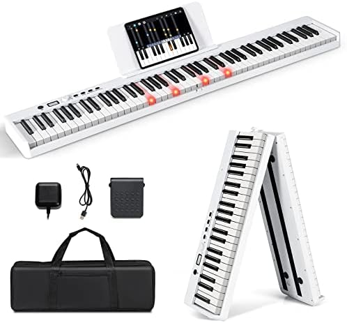 【Source audio de qualité & fonctions】Équipé de la source audio DREAM française, le piano numérique offre une riche qualité sonore et diverses fonctions, comprenant 380 sons, 128 rythmes, 88 démos, double timbre, métronome, batterie de clavier et accords. Plus important encore, le clavier sensible à la vélocité répond à votre dynamique de jeu. La fonction de partage permet à 2 joueurs de jouer simultanément, ce qui le rend parfait pour les cours de musique ou les jeux à deux. Caractéristiques : Source audio DREAM française & fonctions abondantes pour une expérience de jeu agréable Fonction de clavier double pour que 2 joueurs jouent ensemble Fonction d'enregistrement vous permettant d'écouter Fonction de fermeture automatique pour économiser de l'énergie Double haut-parleurs pour un son clair et un ton riche Les touches avec texture de bois noir sont confortables au toucher Batterie rechargeable de 2600mAh pour un temps de jeu suffisant (5 heures) Idéal pour le développement des habitudes, le divertissement familial, les leçons de musique et les performances scolaires Spécifications : Couleur : Noir/Beige/Blanc Matériau : PS + ABS Dimensions globales : 125 x 24 x 6 cm (L x l x H) Taille du pupitre : 40 x 16 cm (L x l) Poids net : 5,5 kg Contenu de l'emballage : 1 x Clavier de piano 1 x Pupitre 1 x Adaptateur 1 x Pédale 1 x Câble USB 1 x Sac de transport 1 x Manuel d'utilisation COSTWAY Piano Numérique Pliable 88 Touches avec Microphone 【Clavier de taille complète sensible à la vélocité】88 touches de taille complète vous permettent de ressentir comme si vous jouiez d'un piano traditionnel, tandis que les touches en grain de bois noir apportent une touche chaleureuse et naturelle. Avec ses 88 touches de taille standard sensibles à la vélocité, le clavier portable convient à la fois aux débutants et aux musiciens professionnels. Le clavier de piano numérique 88 touches sera un instrument de musique parfait que ce soit pour les musiciens débutants ou confirmés, qui prend moins de... Le pupitre amovible soutient parfaitement votre partition pour plus de commodité. Description : Le piano numérique a une source audio DREAM française et des haut-parleurs stéréo doubles pour 380 sons, 128 rythmes, et 88 démos. 【Clavier double】Vous pouvez appuyer sur le bouton « Split » pour entrer en mode de sélection du ton partagé afin de diviser le clavier électronique en 2 parties (gauche et droite). Clavier 88 Touches Clavier Numérique Piano 88 Touches Portable Fonction Bluetooth Réglable 128 Rythmes 2 Haut-Parleurs Pour Enfants&Adultes Piano Numérique Marque. COSTWAY · Couleur. Blanc · Nombre de clés. 88 · Niveau de compétence. Débutant · Caractéristique spéciale. Fonction Bluetooth, Interface MIDI, Pédale de... Il peut également prendre en charge la connexion MIDI à des applications comme POP Piano, GarageBand, Perfect Piano, etc.
