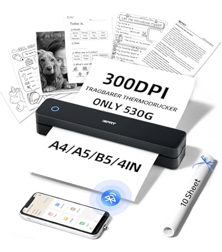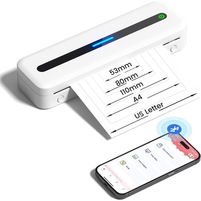 Restez productif et imprimez en douceur avec cette imprimante portable Imprimante Thermique Portable Ipriante Therique Portable, Ipriante Portable Bluetooth Sans Fil Imprimante Thermique A4 Portable Caractéristiques :1., [Impression sans encre] Cette imprimante portable est facile à utiliser, elle ne nécessite pas de cartouche, de toner ou d'encre, est propre et respectueuse de l'environnement. Imprimante thermique Bluetooth A4, batterie 1800 mAh, 29,1 x 10 x 6,2 cm - blanche. Vendu par... Connexion facile et printdiseignsho sans fil Il suffit de connecter l'imprimante via Bluetooth, télécharger l'application iPrint, et commencer à imprimer à tout moment, n'importe où-sans tracas et les connexions informatiques compliquées. 【Facile à utiliser sans utiliser d'encre】 Cette imprimante thermique portable est facile à utiliser et ne nécessite pas de cartouches d'encre, de toner ou d'encre. Ejoyous Imprimante Mobile A4, Petite Imprimante Thermique Bluetooth 300 DPI sans Encre, Imprimante Portable sans Fil pour Téléphone Portable avec Android et... Liste des paquets : 1 x A4 imprimante thermique1 x câble USB 2 [Taille d'impression] L'imprimante sans fil prend en le papier thermique d'une largeur de 210 ou 218 mm (largeur du papier A4), couvrant une variété de besoins d'impression., 3., [Facile à utiliser] Connectez-vous simplement via Bluetooth, téléchargez l'application iprint et commencez à imprimer à tout moment, n'importe où, sans avoir besoin de connexions informatiques complexes., 4., [Large compatibilité] Cette imprimante portable est compatible avec les smartphones iOS et Android (avec Bluetooth), garantissant une large compatibilité., 5., [Grande capacité] Cette mini-imprimante est équipée d'une batterie rechargeable de 1 000 mAh et peut être complètement chargée en 1,5 heure environ, capable d'imprimer 90 feuilles de papier thermique A4 en continu. Soyez soucieux de l'environnement et profitez de la facilité d'utilisation de cette imprimante thermique Imprimante Portable Ejoyous Imprimante Thermique A4 - Imprimante Spécification :Type d'article : imprimante thermique A4Matériau : ABSMéthode de connexion : BT 4., 0 ou supérieurSystème de support APP : pour le support de l'application iprint pour Android - et Systèmes IOSSpécifications d'impression : 200 dpiCapacité de la batterie : 1 batterie au lithium rechargeable de 1 000 mAh (intégrée)Extinction automatique : 30 minutes Temps de : environ 1,5 heureAutonomie de la batterie pour une impression continue : 90 feuilles de papier thermique A4Vitesse d'impression : 10 mm/s Spécifications de largeur de papier applicable : papier thermique 210 mm 218 mm (non inclus)Interface de chargement : Type CTaille : environ 265 x 58 x 32 mm/10,4 x 2,3 x 1., 3 poucesComment utiliser :Retirez le produit et installez-le pour l'utiliser. Batterie longue durée pour une impression continue : grâce à batterie rechargeable intégrée de 1 000 mAh, cette mini imprimante peut être complètement chargée en 1,5 heure environ.
