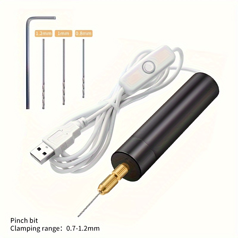 * Contenu : 1 mini perceuse électrique, 10 forets de 0,9 mm, 3 forets de 1,1 mm, 1 clé. Kit Perceuse Précision 8000 Tr/min Mini Perceuse Électrique Portable Mini Perceuse Électrique Portable Perceuse Manuelle Pour Loisirs Créatifs Caractéristiques : Matériaux : métal, plastique., Tension : 5-6 V. Ulisem Mini Perceuse Outils Rotatifs LED Mini Perceuse Électrique sans... *Large application : c'est un kit époxy idéal pour la fabrication de colliers, boucles d'oreilles, bracelets, pendentifs, porte-clés, modèles, sculptures, poupées, etc. (Remarque : il ne convient pas pour les métaux lourds ou les matériaux de haute dureté., ) Fangming-perceuse électrique portable Mini Perceuse électrique 0,8-1,2... L'interrupteur est facile à utiliser et pratique à utiliser. Plage de serrage : petite taille 0,7-1,2 mm. Et avec le corps en forme de stylo permet aux perceuses sans fil de tenir comme un stylo lors de l'utilisation, avec une précision optimale et ainsi que pour le confort. Mini perceuse électrique portable Mini perceuse micro USB portable avec La mini perceuse portable est alimentée par un câble USB. * Mini kit de perceuse électrique : la mini perceuse est alimentée par un moteur à grande vitesse, offrant une vitesse de rotation de 8000 tr/min, ce qui vous permet de traiter efficacement diverses applications avec précision.