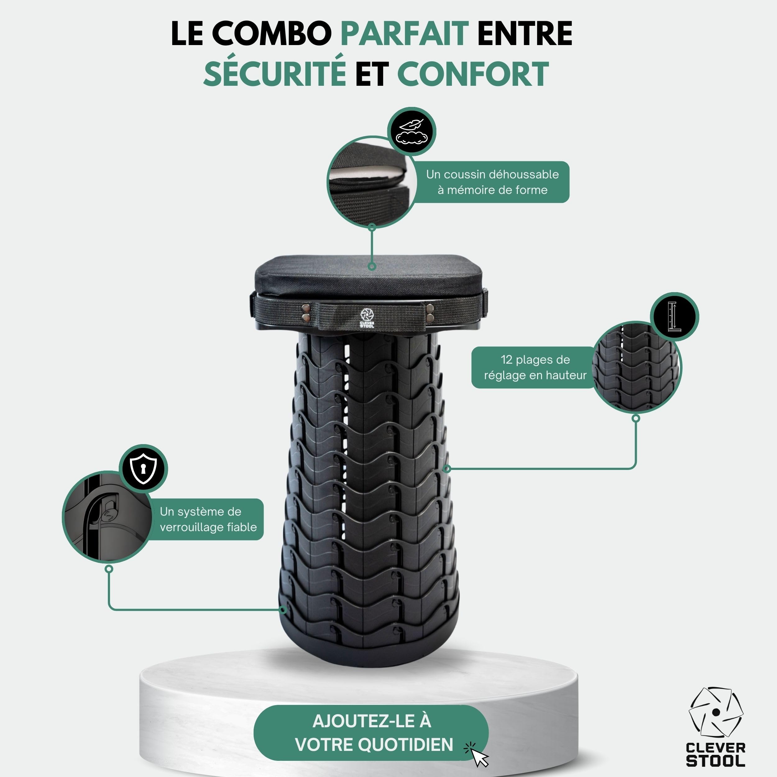 ALEVMOOM Tabouret pliable épais amélioré, tabouret télescopique Idéal pour les adultes et les enfants : la chaise pliante d'extérieur polyvalente pour tous les terrains et toutes les tailles. Tabouret Pliable Léger 1.2kg FUNNING-Tabouret Pliant Portable Tabouret Télescopique Amélioré De Tabouret Pliant Télescopique 11 boucles permettent un réglage en continu de la hauteur de 7,5 cm à 45 cm. Il pèse seulement 1 kg, et avec sa sangle, tu le portes partout sans effort. En plus, y'a un coussin pivotant pour plus de confort, et un sac de transport FUNNING-Tabouret Pliant Portable Tabouret Télescopique Amélioré de... La chaise pliante se ferme en toute sécurité grâce à la fermeture à cliquet (pas d'ouverture accidentelle). Portable et super léger : votre compagnon idéal pour l'extérieur. Le dessous antidérapant garantit un maintien total sur toutes les surfaces, que ce soit en camping, dans le jardin ou à la maison. Hauteur réglable sur 11 positions : ce tabouret de camping pliable offre un ajustement flexible. Se fixe rapidement au sac à dos ou accroché sur l'épaule grâce à sa bandoulière réglable - Le tabouret pliant portable idéal pour le camping et les voyages. Stabilité et sécurité ultimes : le tabouret pliant portable convainc par sa structure en écailles de poisson redessinée et son plastique épais pour une résistance exceptionnelle.