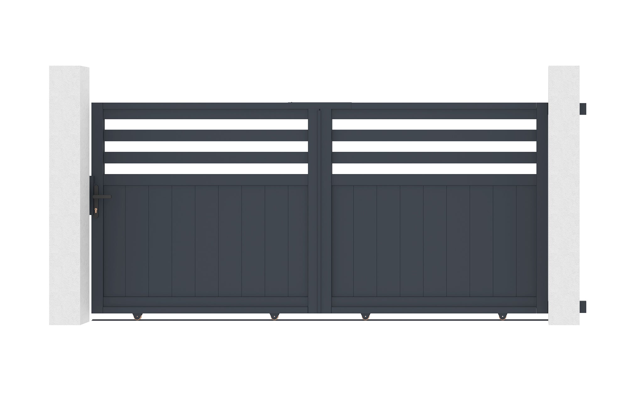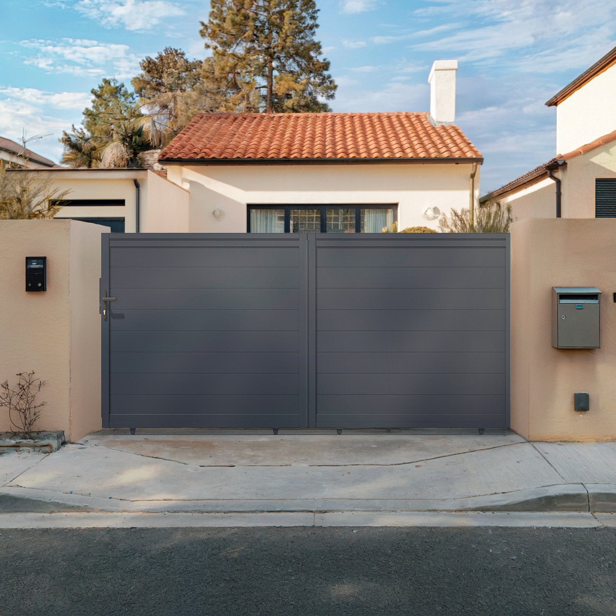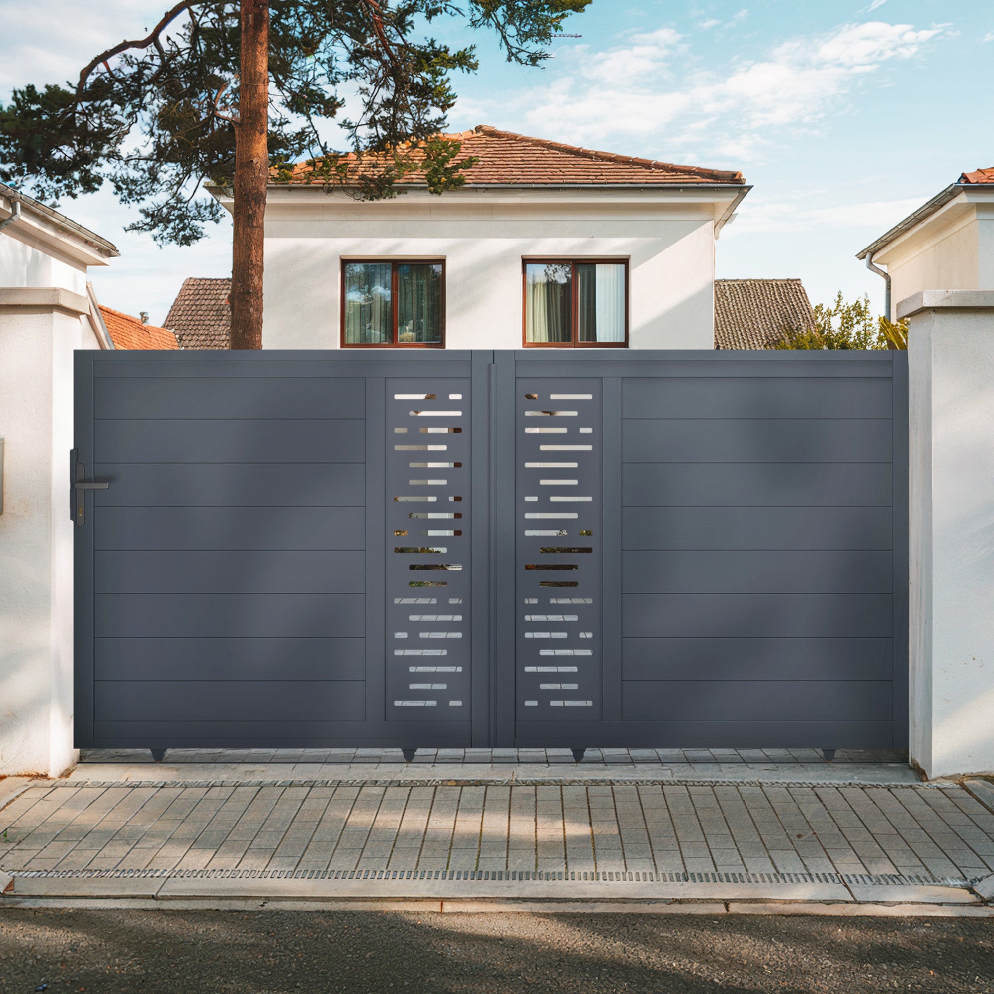 Si votre installation requiert des piliers, nous proposons des packs promotionnels comprenant un portail coulissant en aluminium de votre choix, accompagné de deux poteaux en aluminium adaptés au portail d’entrée choisi. Pourquoi Casanoov Portail coulissant 3m VEYMONT H. Description du produit Descriptif technique Portail coulissant 3m veymont h. Portail Coulissant 3m ADULA H.140cm Aluminium Gris | Leroy Merlin Kit Portail Aluminium Ajouré Fabriqués en matériaux durables et résistants aux intempéries, ils allient praticité et design moderne. Ses lames espacées vous permettent de gagner en visibilité et de laisser traverser la lumière naturelle pour illuminer votre entrée, tout en vous préservant des regards indiscrets et en vous garantissant sécurité. Nos notices de montage pour portail coulissant ont été pensé pour vous offrir deux options d’installation différentes en fonction du sens d’ouverture choisi : de gauche à droite ou de droite à gauche. (baguette de finition à l'extérieur)Pour tout complément d’information, merci de contacter notre service client via notre formulaire de contact. Portón eléctrico batiente 4x1 2m VEYMONT + motorización HICKER B200 Tienda Hogar 140cm aluminium gris est le choix idéal ? Informations sur la marque Casanoov ,spécialiste de l’aménagement extérieur de maison, propose portails, portillons et clôtures en aluminium en kit, à assembler et monter soi-même. Inspirés et designés en France, ils offrent des styles variés : plein, ajouré ou designs modernes avec plaques décoratives, pour embellir vos extérieurs selon vos envies. Points clés Largeur: 303 cm et Hauteur: 142 cm Pour assurer une installation sécuritaire et stable du portail coulissant, les poteaux doivent avoir une hauteur minimale de 160 cm et une largeur d’au moins 15 cm, en raison des dimensions du guide supérieur qui mesure 12 cm de large. Caractéristiques et avantages Hauteur : 147cm et Largeur : 303cm Résistant à la corrosion Kit facile à monter Accessoires inclus Idéal pour les amateurs d'originalité Matière principale : Aluminium Pack portail coulissant électrique VEYMONT 300x140cm Motorisation... Faciles à installer, nos produits allient sécurité, esthétique et tendance à des prix compétitifs. Optez pour le portail coulissant VEYMONT avec son design peu commun et faites de votre entrée un espace unique combinant à la perfection élégance et modernitéDescription : Portail coulissant design, 1 vantailMatériau : AluminiumColoris : Gris anthracite RAL 7016Dimensions : Largeur 303 cm x Hauteur 142,4 cmLargeur totale nécessaire avec dégagement : 656,8 cmHauteur minimum des piliers : 160 cmCe kit de portail coulissant VEYMONT 300x140cm à monter et à installer par vous-même contient : - 8 lames en aluminium thermolaqué (Largeur 12,5 cm) - 8 lames en aluminium thermolaqué (Largeur 7,75 cm) - 1 guide supérieur composé de 4 roulettes en nylon - Rail de guidage en acier de 6m - 4 roulettes en acier - 1 gâche de réception - 1 butée de réception - 1 serrure à barillet - 1 Poignée (Coloris Noir) - 5 clefs - Caches de finitionSi vous désirez motoriser votre portail coulissant, des packs promotionnels, constitué d’un portail au choix accompagné de la motorisation adéquate, vous sont proposés sous cette fiche produit. Sa résistance à la corrosion lui garantit une durabilité exceptionnelle, tandis que sa finition thermolaquée lui offre non seulement une esthétique durable mais facilite également son entretien. Les poteaux ne sont pas inclus dans nos kits car ils ne sont pas indispensables à l’installation de votre portail coulissant dans le cas où votre extérieur dispose déjà de piliers/poteaux. Le modèle VEYMONT est également disponible en d’autres dimensions. Conçu en aluminium, matériau reconnu pour sa légèreté, le portail coulissant VEYMONT est facile à monter et à installer.