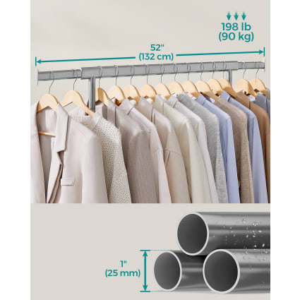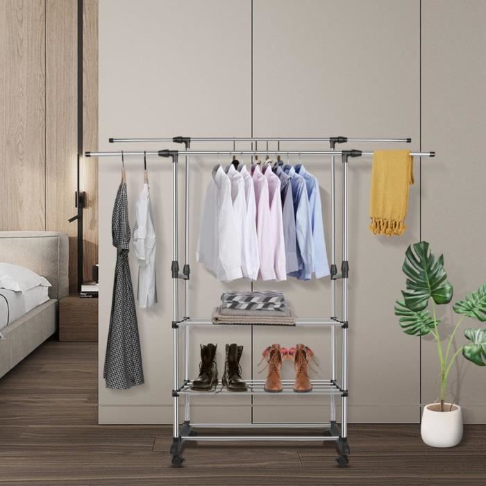 Beaucoup d'espace de rangement grâce à des étagères supplémentaires EN STOCK : Portant à Vêtements avec Roulettes, Capacité de Charge 100 kg, 45 x (92-132) x 161,5 cm, Noir, HSR13BKV1 pas cher. Livraison rapide partout en... La charge maximale est de 100 kg Vous pouvez utiliser ce dernier pour ranger vos chaussures ou vos accessoires tels que les sacs à main. Portant Vetement ONVAYA® Portant à Vêtements Haute Capacité De Transport | FindTheDeal Portant Métal Plastique Gris Argenté Porte-manteau Onvaya avec housse - Convient pour une charge maximale élevée Matériaux de haute qualité , Savoir-faire d'Allemagne Grâce aux roues, vous pouvez facilement le déplacer à un autre endroit de la pièce ou même dans une autre pièce. Pour une manipulation facile, le portant est équipé de 4 roulettes Grâce à une étagère, les chaussures peuvent également être rangées La garde-robe à roulettes élégante et pratique pour vos vêtements Le portemanteau mobile ONVAYA avec couvercle en métal robuste Le portemanteau ONVAYA offre de la place pour tous vos vêtements préférés et, grâce à sa grande capacité de charge et à son look moderne, il est l'accessoire idéal pour votre dressing ou votre chambre à coucher. Facile à déplacer grâce aux rouleaux intégrés EN STOCK : Portemanteau sur Roulettes, Portant à Vêtements Robuste, Charge 90 kg, Chambre, Blanc, HSRFR017WG01 pas cher. Livraison rapide partout en France La qualité à des prix justes Dimensions (l x p x h) : 120 x 50 x 180 cm - Poids : environ 8,5 kg Portant à vêtements sala, en métal chromé et gris