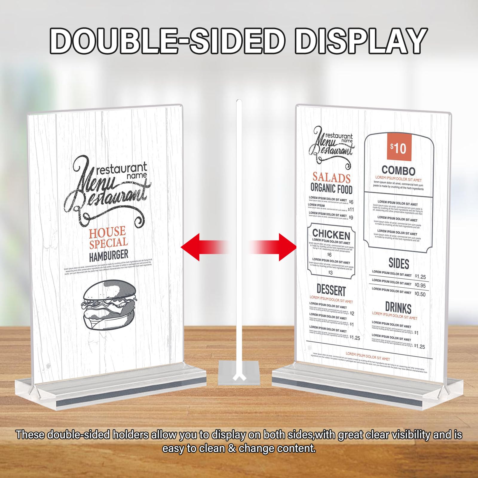 Ces Porte Affiche A4 sont faciles à assembler et idéaux pour exposer publicités, brochures, photos ou menus. Aucun outil n’est nécessaire. Porte Affiche A5 Support Feuille A4 Srvnpioy Lot De 6 Présentoirs De Table A4 En T - Base En Bois - Support Pour Enu A4 - Acrylique Chevalet A4 Presentoir A5 Porte Menu Restaurant Support Table Porte Affiche A5 Présentoir De Table En Solde 6 Présentoirs De Table A5 Acrylique - Porte Menu Restaurant - Chevalet Transparent Recto-Verso Porte Menu A5 Presentoir A5 Porte Affiche A4 Que ce soit pour afficher des informations dans un magasin, présenter un menu dans un café ou exposer des offres spéciales, chaque Porte Affiche A4 s’adapte à tous les contextes. Porte Affiche A4 Présentoir A4: 6 Pièces Présentoir de Table A4, Presentoir A4 Transparente Acrylique, Porte Menu Restaurant, Support Menu, Chevalet de Table pour Menu, Mariage, Hôtel, Cadre Photo PRÉSENTATION PROFESSIONNELLE ET POLYVALENTE Ce Porte Affiche A4 en acrylique transparent au format portrait est idéal pour mettre en valeur vos menus, affiches, brochures, étiquettes ou photos. INSTALLATION SIMPLE ET RAPIDE Le Porte Affiche A4 est conçu pour être assemblé en quelques secondes : retirez simplement la base, insérez votre document, puis replacez la base. Pensez à retirer le film protecteur avant d’utiliser le Porte Affiche A4 pour une clarté maximale. Il peut également servir de Porte Menu lors d’un mariage ou d’une réception. Grâce à son design élégant et minimaliste, le Porte Affiche A4 assure une présentation claire, moderne et adaptée à tout type d’environnement : restaurants, cafés, hôtels, bureaux ou salons professionnels. Un Présentoir A4 indispensable pour vos besoins d’affichage au quotidien. Le matériau transparent assure une excellente lisibilité de vos documents exposés. Utilisation Polyvalente : Que ce soit comme Porte Menu, support de communication ou outil promotionnel, ce Porte Affiche A4 s’adapte à de nombreuses situations : bureaux, commerces, événements, établissements scolaires ou restaurants. STABILITÉ ET ESTHÉTIQUE Grâce à sa base solide et à sa conception autoportante, le Porte Affiche A4 tient fermement sur toute surface plane sans risque de basculement. Matériau Résistant et Transparent : Chaque Porte Affiche A4 est fabriqué en acrylique clair de 1,5 mm d’épaisseur, offrant une excellente résistance aux chocs et à la déformation. MATÉRIAU HAUTE QUALITÉ Fabriqué en acrylique transparent de 1,5 mm d’épaisseur, chaque Porte Affiche A4 est plus solide que les modèles classiques. Excellente Stabilité : Doté d’une base solide, le Porte Affiche A4 reste bien en place sur toutes les surfaces planes : comptoirs, bureaux, tables.
