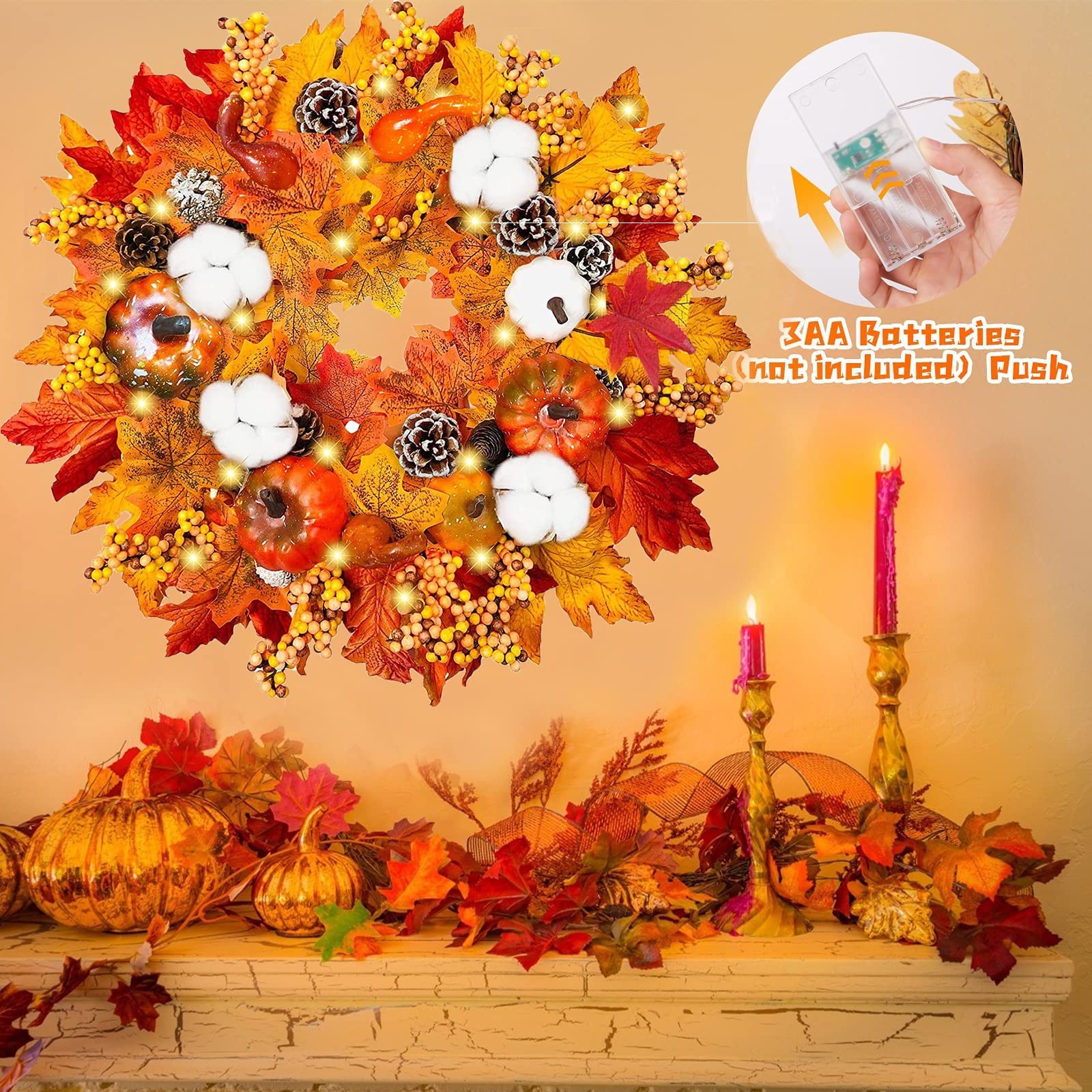 keebgyy Guirlande d'automne de 55 cm, guirlande de récolte d Entretien facile : la couronne de porte ne tombe pas facilement, ce qui garantit une utilisation à long terme. Halloween Porte Couronne De Porte Artificielle D'automne Guirlande Décoration D'entrée Couronne Récolte Décoration Saisonnière Les plantes artificielles ont des fonctions pratiques incroyables et ajoutent des fonctionnalités riches, chaleureuses et amusantes pour montrer votre automne. Guirlande multifonction : les motifs de couronne florale de pivoine et de tournesol animeront votre porte d'entrée, transformant votre modeste porte d'entrée en une entrée vibrante et attrayante et accueillant votre famille et vos amis les plus proches tout au long de la famille d'automne. Ce n'est pas seulement Thanksgiving Guirlande artificielle de 45CM, guirlande de récolte, thème de porte de... Décoration parfaite pour les fêtes de fin d'année : ce tournesol d'automne le rend idéal pour la décoration en automne, Thanksgiving, Noël et les saisons de récolte. C'est très facile à entretenir. Convient pour les occasions : les couronnes de porte artificielles en automne conviennent aux cuisines familiales, aux bureaux, aux salles de classe, aux magasins et à tout endroit que vous souhaitez décorer, créant une atmosphère d'automne. C'est aussi un bon cadeau pour votre famille et vos amis., 4., Décorations idéales pour l'automne : ce magnifique décor d'automne peut être utilisé dans de nombreux styles pour décorer votre porte ou votre cheminée. Essuyez-le de temps en temps avec un chiffon et il aura l'air tout neuf. Caractéristiques 1., Matériel: tige en fil de fer avec le papier enveloppé, citrouilles en mousse, feuilles d'érable en soie, tournesol et baies.