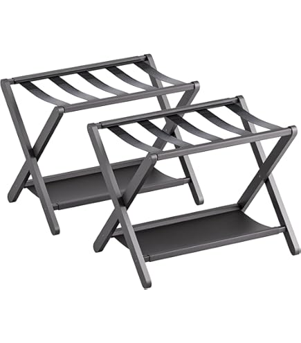 Rangement Chambre Hôtel Porte-bagages Pliable En Bambou SMIBUY - 2 étagères | Support Valise Hôtel | 67x41x54 Cm Porte Valise Pliant Pour Chambre Lorsque vous ne l'utilisez pas, il suffit de plier le support à plat, le porte-bagages ne prend pas trop de place dans votre chambre d'amis ou votre chambre d'hôtel. Porte-valise Blanc Compartiments Organisateur Voyage Métal Lot De 2 Porte-Bagages Pliables 54,4kg - Rangement Valises Chambre/Hôtel - Noir Range Valise Sans Se Baisser Porte-bagages Pliable Rangement Le design minimaliste donne aux chambres d'amis un look moderne et élégant. Il comprend plusieurs compartiments. La partie supérieure est composée de 4 sangles qui garantissent le maintien et la stabilité de vos bagages. La seconde partie est composée de 7 tuyaux en métal pour ranger vos affaires comme vos sacs ou chaussures. La capacité maximale autorisée est de 60kg Lot de 2 porte-bagages pliables avec compartiments de rangement, pour chambre d'amis, chambre à coucher, hôtel, bagages de voyage (blanc) : : Cuisine et MaisonCet article a été testé et peut être envoyé sans risque dans son emballage d'origine pour éviter les emballages superflus. Depuis 2015 nous avons réduit le poids des emballages d'expédition de 43% en moyenne - plus de... Un bon soutien le rend efficace pour prévenir les chocs. Se replie à seulement 60 x 70 cm et peut être rangé sous un lit, dans un placard, derrière une porte ou tout simplement dans un coin étroit. Facile à installer : avec l'image et les ferrures fournies, suivez simplement les instructions étape par étape et serrez les vis pour le configurer. Grand et élégant : vous n'avez plus besoin de poser votre valise sur le sol ou le lit, il soulève les bagages à une hauteur confortable pour emballer et déballer tout en étant assis sur un lit ou un tabouret. Fabriqué à partir d'une structure de stabilisation en forme de X qui empêche le balancement pour garantir que le porte-bagages reste en place pendant l'utilisation. Lot de 2 supports de valises (blanc)