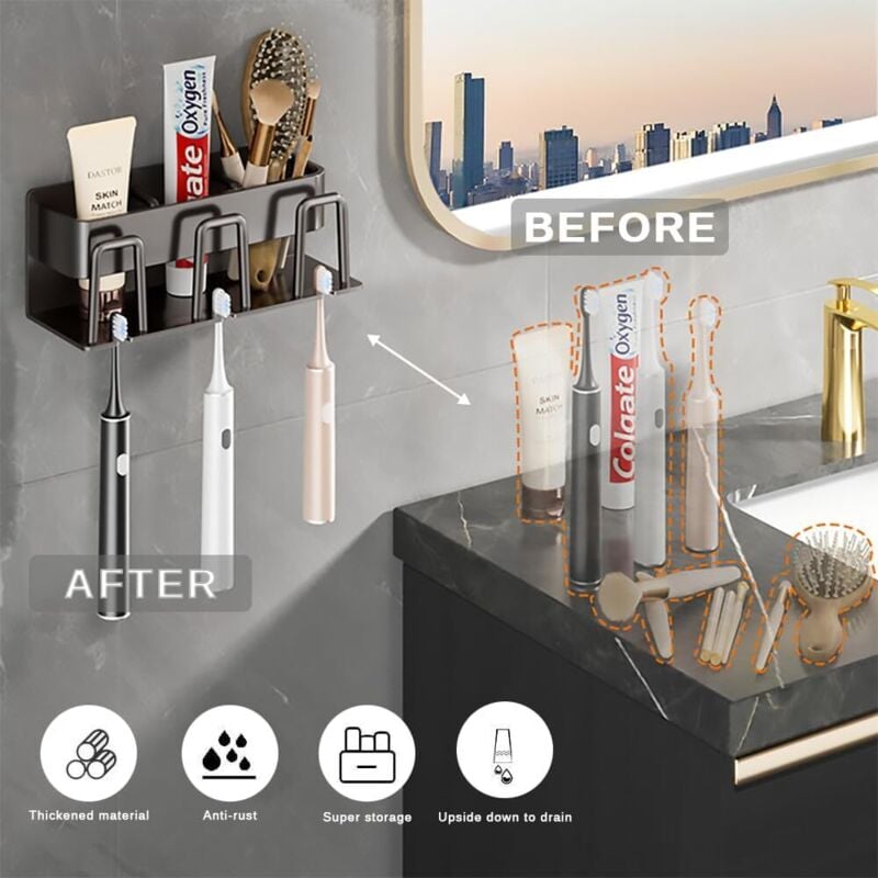 Brosse A Dent Electrique Porte Brosse à Dents Electrique GGQ Support De Brosse à Dents Porte-brosse à Dents Mural Porte Brosse à Dents Mural Noir Porte-brosse U00e0 Dents U00e9lectrique Mural Support De Rangement Noir Pour Les Besoins Quotidiens Brosse A Dents Electrique Conseils : le montage adhésif convient aux surfaces lisses, sans poussière et sèches telles que le carrelage, le marbre, le verre et le métal. · MATÉRIAU... Ce porte-brosse à dents offre un espace de rangement pratique et généreux pour divers articles de toilette. Les bords lisses du porte-brosse à dents préviennent les rayures. 1 Brosse à dents électrique 2 Brosse nettoyante visage 3 Brosses à dents variées Grand espace de rangement RANGEMENT ET ORGANISATION EFFICACES: porte-brosse à dents pour brosses à dents manuelles et brosses à dents électriques, dentifrice, rasoirs, nettoyants pour le visage et autres objets. Économisez de l'espace dans votre lavabo et rendez votre salle de bain plus fraîche et bien rangée. CONVIENT À TOUS LES ACCESSOIRES: assez d'espace entre chaque fente de brosse à dents, la tête de la brosse peut être facilement insérée dans le support, suspendre librement, égoutter facilement et sécher rapidement, gardez vos articles de toilette secs et propres pour une expérience saine. Ce porte-brosse dents est quip de 3 grands compartiments et de 8 compartiments pour brosses dents et est parfait pour un usage familial
