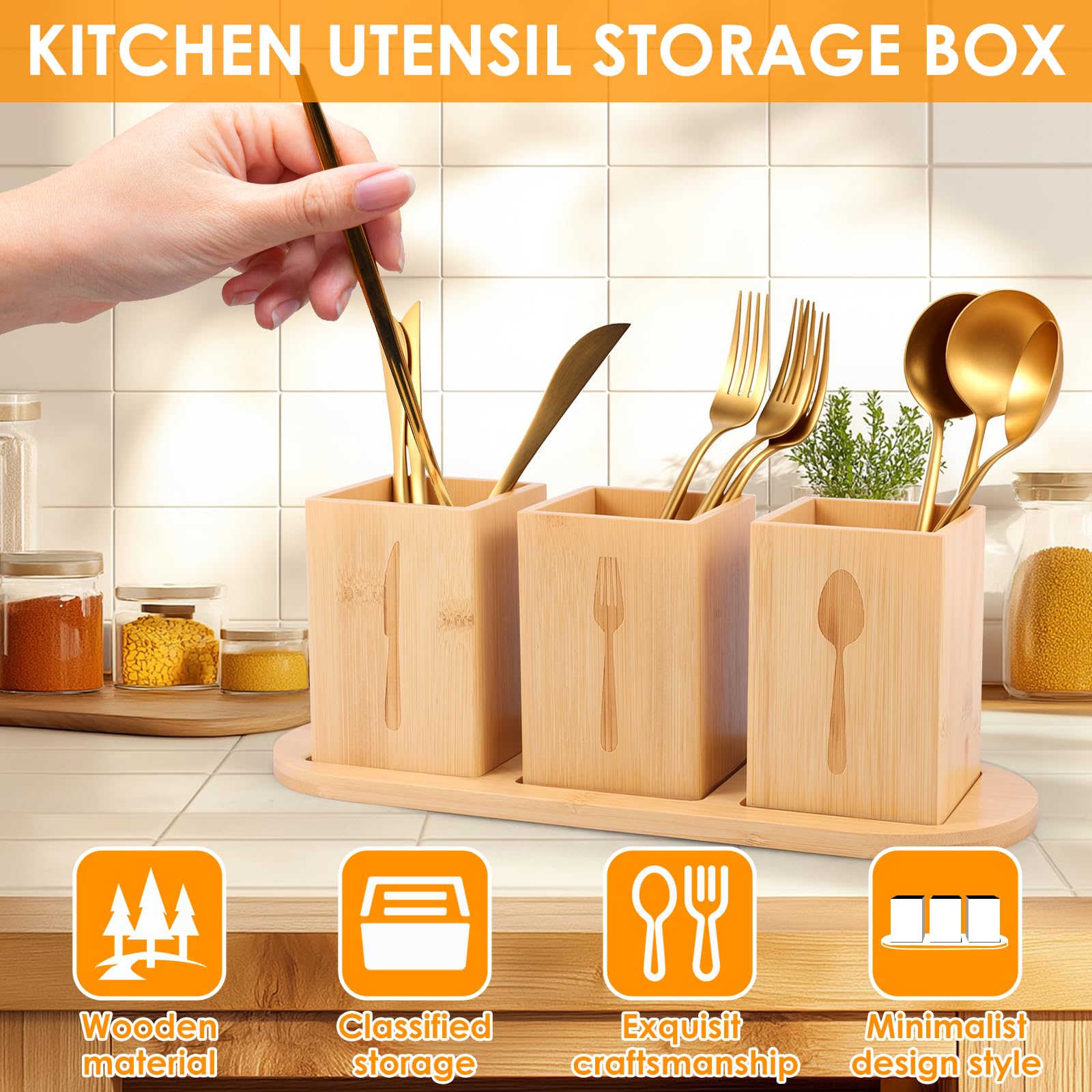 HIMAugbo Range Couvert avec Couvercle, Boite de Rangement Couverts Cuisine avec 5 Compartiments Porte-couverts en bois : notre porte-ustensiles est fabriqué en 100 % bois massif, ce qui le rend plus robuste et durable. Aspect naturel, peut non seulement être utilisé comme porte-ustensiles, mais peut également décorer votre cuisine Porte Ustensiles Cuisine Porte Couvert En Jute Et Dentelle (Lot De 4 Accessoire Pique-nique Barbecue Rangement Caractéristiques : Performance : A. Aspect naturel, peut non seulement être utilisé comme porte-ustensiles, mais peut également décorer votre cuisine Porte-Couverts Cuisine 3 Compartiments En Bois Blanc Porte-Couverts De... Dimensions du produit : 25,5 x 8,7 x 11., Matériau : bois., Couleur : noir., Nombre de cellules : 3., Contenu de l'emballage : 1 étagère à vaisselle Grande capacité : le panier à couverts mesure 25,4 cm de long x 10,9 cm de haut x 8,6 cm de large, avec 3 compartiments indépendants, gardez vos ustensiles de cuisine ou couverts ou autres essentiels de cuisine séparés et organisés Nombreuses utilisations : le porte-couverts est parfait pour organiser la vaisselle, l'artisanat ou les fournitures de bureau dans la cuisine ou pendant le camping, et même pour les cosmétiques et les produits de bain dans la salle de bain Vous pouvez placer la poignée de l'argenterie face vers le haut afin que vos invités puissent y identifier les articles sélectionnés sans toucher l'extrémité comestible de l'argenterie