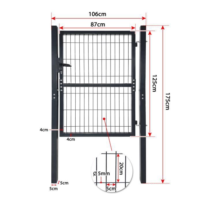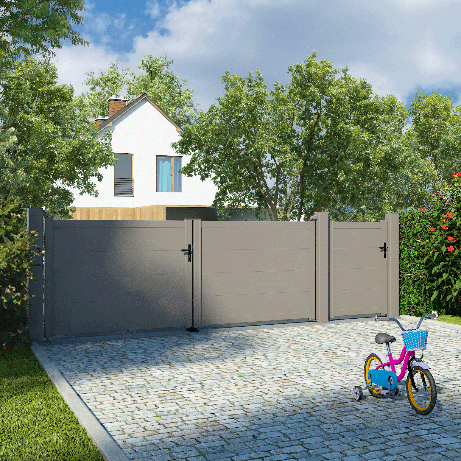 Portail battant motorisé en aluminium EVANS gris anthracite/gris taupe Finition mate lisse : La finition non réfléchissante est jolie et résistant aux rayures pour durer. Porte Jardin Extérieure Avec Sommet Lance Porte De Avec Verrouillage Gris 175 X 300 Cm Acier Porte Jardin Robuste Installation DIY 2 Personnes Construction robuste en acier revêtu de poudre : Cette porte est faite en acier de qualité qui peut supporter toutes sortes de conditions extérieures, ce qui la rend super robuste. Porte battante gris anthracite H 2040 x L 930 mm - 3 verres armés... Clôture de jardin avec sommet de lance Noir 190 cm - Clôture Jardin... Finition : Revêtement en poudre Dimensions spacieuses : Mesurant 2,995 x 2,245 mètres, elle s'adapte bien à la plupart des endroits, parfaite pour divers espaces extérieurs. Intérieur/Extérieur : Extérieur uniquement, Salle : Autre, Marque : C'est un bon équilibre entre style et fonctionnalité. Installation facile : Elle nécessite deux personnes et quelques outils comme un tournevis, une clé et une perceuse, idéale pour les fans du DIY., Couleur : Gris , Forme : Rectangulaire Cette porte de jardin, au style traditionnel, a une fonction double battant qui est un super ajout pour l'extérieur.