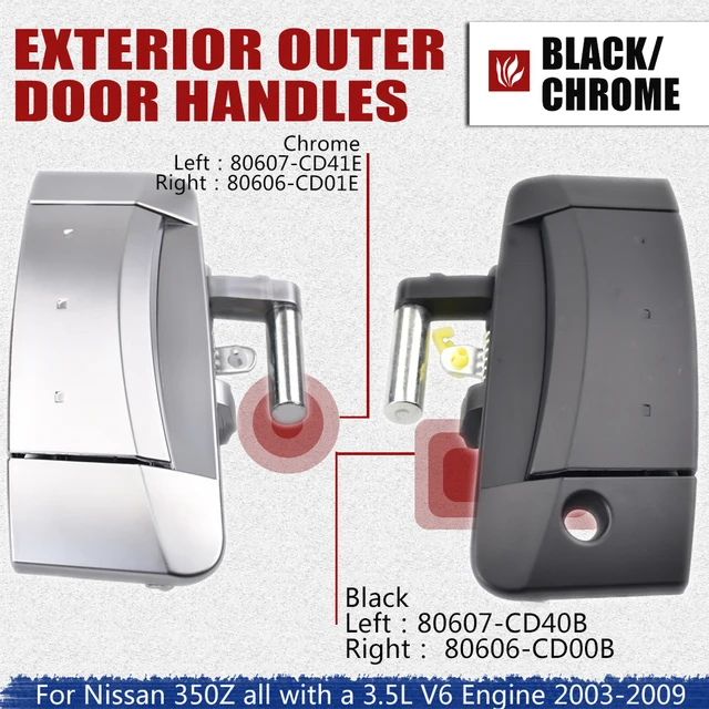 Poignée de porte extérieure pour Nissan 350Z 2003 – 2009, remplacement côté conducteur gauche droit du passager, OEM 80607-CD41E 80606-CD01E, 1 pièce ; 1,00... Poignée de porte extérieure gauche droite noire pour voiture 350Z 2003-2009 80607-CD41E 80607-CD41D Sa construction robuste assure une durabilité à long terme, vous offrant une solution fiable pour vos besoins de portes coulissantes. Poignée Extérieure Gauche Droite 350Z Poignée De Porte Extérieure Côté Conducteur Gauche Avec Trou Pour Clé | Pour Nissan 350Z 2003-2009 | Remplace # 80607-CD41E, 80607-CD40B, 80607-CD40E, 80607-CD41D Poignée Noire ABS Nissan 350Z La poignée de porte extérieure est facile à installer, sans outils compliqués et est pratique à utiliser. Bedroom Door Lock - Door Knob with Lock and Key - Exterior Door Handles - Stainless Steel Door Locks for Entry Door - Interior Door Lock Set - Poignée de Porte Extérieure 3.9(324) 400 bought in past month Price, product page$1599 FREE delivery Sat, Jan 10 on your first order Or fastest delivery Thu, Jan 8 Veuillez vérifier et confirmer que ces éléments correspondent au vôtre avant d'acheter. Poignée de porte extérieure noire, gauche et droit... – Grandado