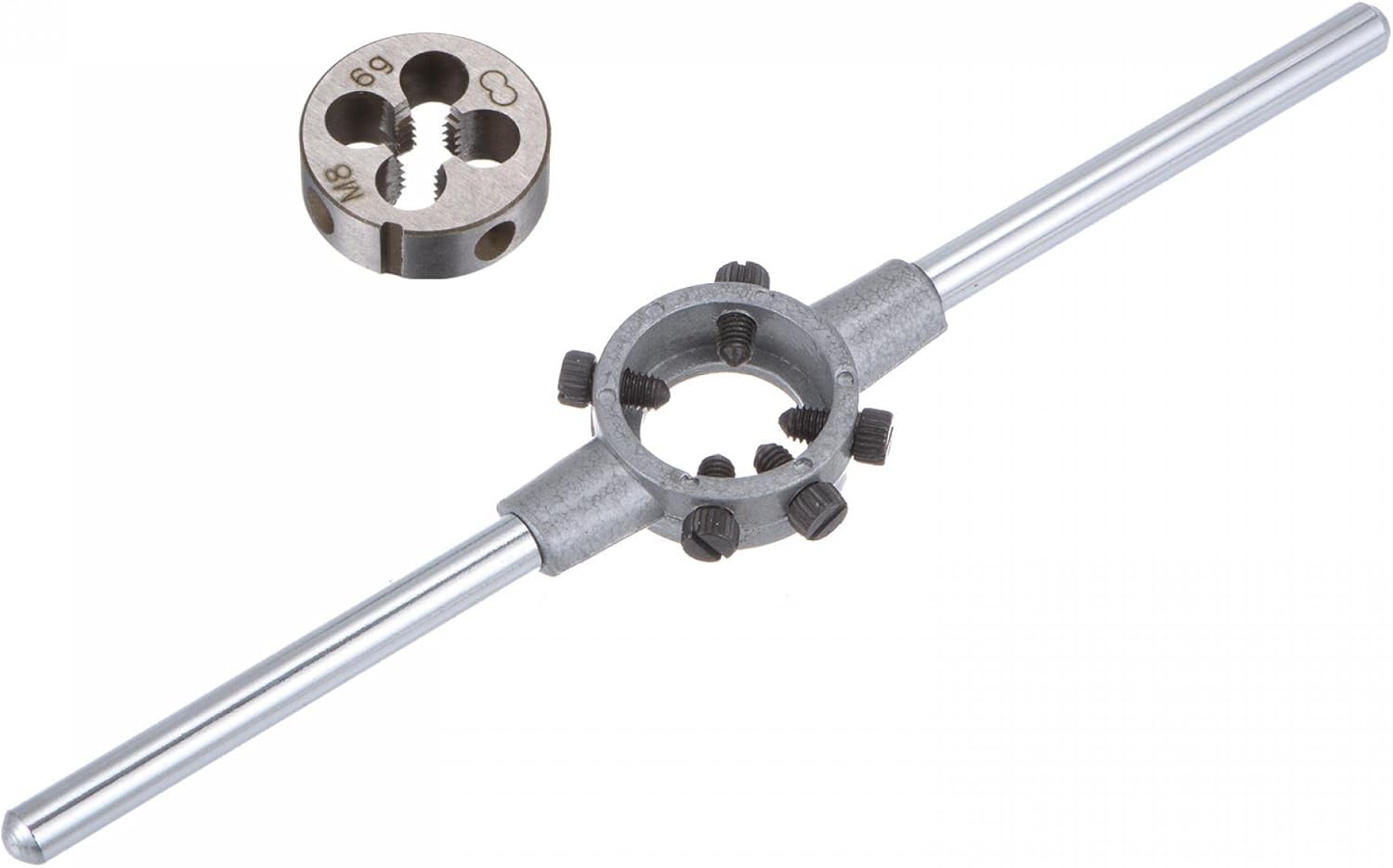 Avec des vis réglables, il peut maintenir en toute sécurité les matrices rondes et est facile à utiliser. Il faut l'inverser tous les 1/4~1/2 de tour pour faciliter l'évacuation des copeaux du trou de copeaux. Porte Filiere Réglable M7 M9 Taraudage Manuel Sourcing Map Porte Filière Stock Matrices Clé à Poignée Filière Et Porte-filière 25mm M10 X 1,25 Filière Filetage Rond Et Porte-Filière 30Mm (Pour M10-M11... Ensemble de clés à molette pour matrices: 25mm la crosse de matrice s'adapte M7-M9 matrices, avec vis réglables., M9 x 0., 5 filetage de la filière ronde avec 25mm diamètre extérieur, trou de verrouillage conique, verrouillage fort et pas de relâchement. Utilisé pour le filetage de l'acier doux, l'aluminium, l'acier inoxydable, la fonte, l'acier allié et l'acier au carbone. Fabriqué en acier au carbone 45#, Il a une dureté élevée, une grande résistance et une résistance à la déformation que l'acier A3 ordinaire. Bon pour les travaux d'entretien et de réparation. Matrice ronde: Convient pour refaire des filetages existants dans des matériaux durs comme le métal, ou pour faire de nouveaux filetages dans des matériaux mous comme le plastique. Pour le filetage à usage général, et pour les travaux d'entretien et de réparation. Facile à utiliser: la rainure de positionnement de la filière doit être alignée avec la vis de fixation au milieu de la clé de la filière, et la vis doit être insérée dans la fente de la filière et serrée. Avec des vis réglables, la crosse de filière peut maintenir en toute sécurité les filières rondes et est facile à utiliser. Filière ronde à main (Round Die) pour filetage métrique pas fin ISO DIN 13, DIN 223 ( DIN EN 22568) tolérance 6g M9 x 0,5 25 x 9 HSS-M2. Cette filière possède des rainures latérales et des trous latéraux pour le serrage des vis du porte-filière Filière: Peut aider à réparer les boulons et les filets cassés ou simplement à retirer les boulons et les tiges filetées lorsqu'il est utilisé avec des matrices rondes. Conseils: Il faut l'inverser tous les 1/4~1/2 de tour pour faciliter l'évacuation des copeaux du trou de copeaux. La poignée de la crosse de filière peut aider à réparer les boulons et les filets cassés ou simplement à retirer les boulons et la tige filetée lorsqu'elle est utilisée avec des filières rondes. Filière Ronde M9 - Taraud, filière en coffret et à l'unité