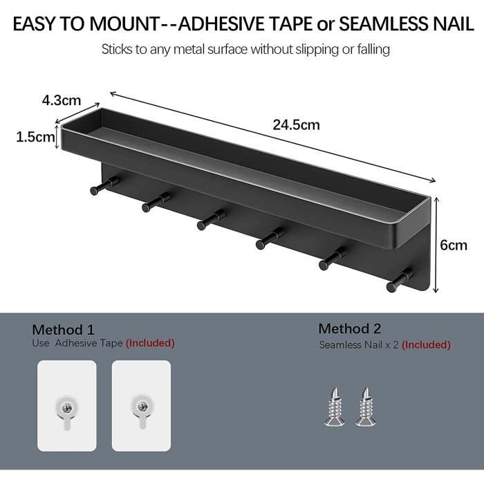 Lvjkes Porte-clés mural, porte clé murale pour maison, noir porte-clés multifonctionnel en métal, avec 7 crochets à clés, convient pour chambres, entrées, garage (chat Contenu et dimensions : La taille de l'étagère à courrier est de 30,5 x 25,4 x 8,1 cm, l'épaisseur du bois est de 1,8 cm. Les crochets sont parfaits pour... Crochet Mural Rangement Entrée Porte-clés Mural Sweet Home Avec 8 Crochets,Patère Métal Pour Porte D Porte Cles Mural Taille appropriée : ce produit mesure environ 29,5 cm de long, 12 cm de large avec 4 crochets. Excellent outil de rangement : ce crochet mural peut contenir une variété de petits objets. SWTYIKI Porte-clés avec 4 crochets doubles - Décoration rustique pour... Facile à installer : ce support mural a deux trous de vis, il vous suffit de le fixer au mur avec des vis ou des clous. Matériau de haute qualité : ce produit est fabriqué en fer de haute qualité, avec une dureté élevée, facile à nettoyer et pas facile à déformer et à rouiller. Le chat mignon apporte un effet décoratif et une durabilité et donne à votre maison un style et une structure chaleureux Le crochet mural pour clé murale est largement utilisé et s'adapte à tous les styles de décoration.