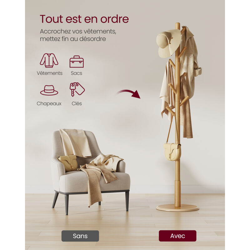 Vous pouvez accrocher des sacs, des porte-documents, des chapeaux, des gilets, des foulards, des sacs pour ordinateur portable ou des parapluies. Porte Manteaux En Bois Massif. Colour: Light Orange | Fr Porte-manteau Sur Pied Rangement Entrée Couloir Porte-manteau Sur Pied Edihome Bois - 8 ✔️ Hauteur réglable : Conception de 3 sections mobiles, deux hauteurs, décidez laquelle vous convient le mieux, moyenne (122 cm) ou grande (172 cm). edihoe, Porte anteau sur Pieds, en bois, pour vêteents, 8 crochets... ✔️ Gain de place : prend peu de place, idéal pour l'entrée, le bureau, le salon et tout autre endroit. Notre porte manteau edihome est accessible aux enfants, adolescents, adultes et seniors.
