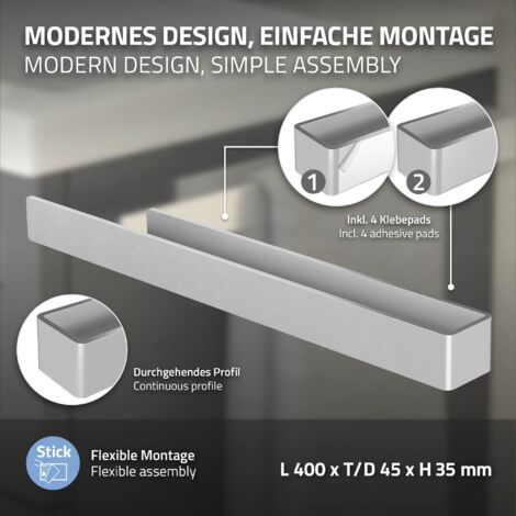 Ce porte-serviettes a un design incurvé, il est différent des autres styles de régulation des serviettes. 【Installation facile】 Il existe deux méthodes d'installation. Il peut être utilisé comme porte-serviettes, porte-chaussons, étagère pour couvercle de casserole, etc. Ce produit est adapté pour les cuisines, salles de bains, balcons, jardins et autres endroits. Il ne peut être installé qu'en quelques minutes avec la colle fournie. Pour l'installer sur les murs lisses, cette règle de serviette n'a pas besoin de percer un trou. Porte Serviette Cuisine Blanc Porte-serviettes En Aluminium, Anneau Porte-serviette Pour Salle De Support Mural Multifonction Porte-Serviettes sans perçage pour Salle de Bain | Autocollant à Deux L'adhésif est uniquement adapté aux surfaces lisses, tandis que le montage à vis est adapté à une variété de murs. Ce design est non seulement beau et moderne, mais peut également éviter les bosses causées par les coins. Il ajoute des éléments plus modernes à votre décoration d'intérieur. Durable et solide : fabriqué en acier inoxydable SUS304 de haute qualité, qui présente une excellente résistance et durabilité et résiste à la corrosion et à la... Remarque : Si vous utilisez de la colle pour l'installation, veuillez coller les autocollants auxiliaires pour garantir l'effet de l'utilisation. Il est léger, imperméable, inoxydable et indéformable. Dans le paquet du produit, il y a également des vis, et peut pénétrer le trou pour l'installation sur les murs grossiers. Présentation du produit Homease Porte-serviettes de salle de bain, sans perçage, règle de serviette autocollante, porte-serviettes en aluminium, [505] Multifonction : il peut être installé dans la cuisine, la salle de bain, le balcon et le jardin pour accrocher les serviettes, les vêtements et les cintres et placer des tongs, des couvercles et de la vaisselle. Il est pratique de ranger... Matériau en aluminium spatial de qualité supérieure : cette règle de serviette est fabriquée en alliage d'aluminium spatial de haute qualité. 【Informations sur le produit】 Dimensions : 40 x 3 x 7 cm Options de couleur : blanc. Il prend moins de place et résout facilement le problème de stockage des objets.