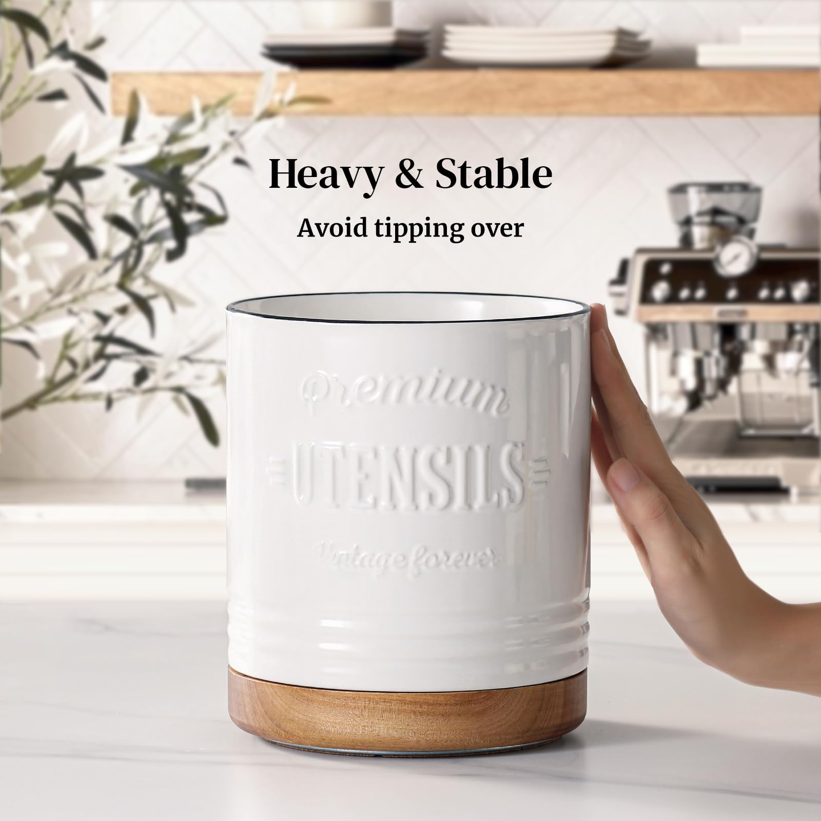 PROFONDEUR ET LARGEUR : Notre porte-ustensiles est suffisamment profond et large pour contenir plus de 20 ustensiles de cuisine, ce qui vous permet de garder votre cuisine organisée et sans encombrement. Ondes en Relief Fluides Récipient Ustensiles Rotatif 360 URB Porte-ustensiles 360 Degrés Rotatif Ustensile Support Spatule Porte-ustensiles Cuisine Rotatif Découvrez-le dès maintenant et partagez la joie ! Apporte de l’ordre dans votre cuisine, sert de décoration élégante et séduit par sa grande polyvalence. Accessoire Pratique pour la Maison Faites plaisir à vos proches avec un cadeau attentionné qui embellit le quotidien et la décoration intérieure. Beaucoup d'espace pour les ustensiles de cuisine : avec un diamètre de 6,2 pouces et une hauteur de 7,6 pouces, le porte-ustensiles de cuisine offre suffisamment d'espace pour les cuillères de cuisine, les fouets, les spatules et plus encore, idéal pour un usage quotidien. Durable et facile d'entretien : fabriqué en céramique de haute qualité, ce récipient est durable, stable et facile à nettoyer. Protège les surfaces des rayures et assure une bonne stabilité. Apportent une touche artistique et élégante. Rotation à 360 ° et à portée de main : grâce à sa base en bois pivotante, ce porte-ustensiles offre un accès pratique à tout le tour, parfait pour les moments de cuisson trépidants. Avec une seule main, vous trouverez rapidement le bon outil de cuisine Un design raffiné allié à une fonctionnalité pratique – idéal au quotidien. Cadeau idéal : que ce soit pour une pendaison de crémaillère, un anniversaire ou Noël, ce porte-ustensiles pratique et décoratif est un cadeau idéal pour tous ceux qui apprécient le style et l'ordre dans la cuisine. 9 trucs d'organisation pour la cuisine qui sont vraient époustouflants
