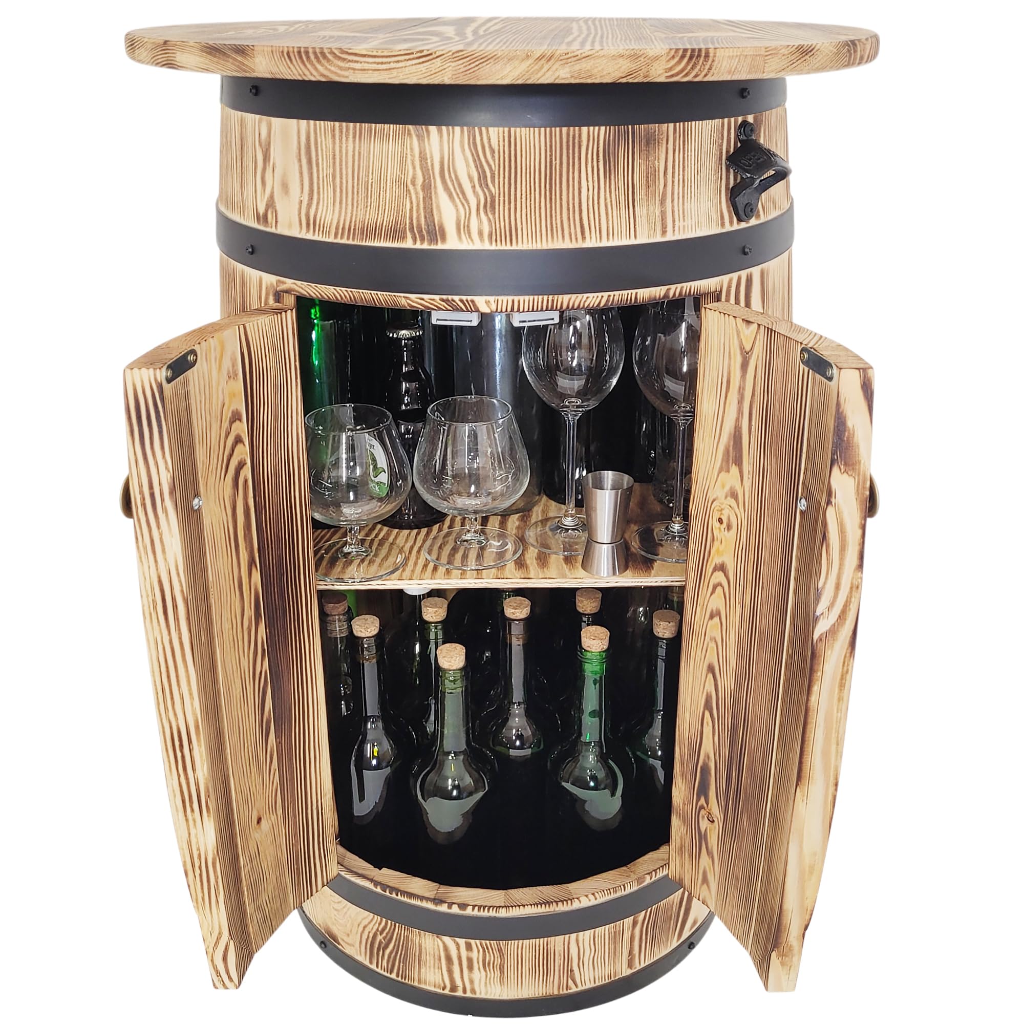 - Portes : oui, doubles, fixées au corps avec charnières décoratives. Le corps a été traité au feu de manière décorative pour mettre en valeur le grain naturel et créer un aspect unique. Tenir à l'écart des flammes nues et des sources de chaleur. - Matériau : bois de pin avec planches en bois de 2 cm d'épaisseur. Décapsuleur latéral en métal. La barre est fabriquée en pin massif d'une épaisseur de 2 cm. Bois naturel et construction stable. - Diamètre du fond : 44 cm - 1 plateau de table de 55 cm de diamètre, laqué incolore Portes : oui, à double battant... - Étagères : 1 étagère pour bouteilles debout + espace de rangement au sol Couleur : marron clair., - Poids : 20 kg. Facilité d'utilisation et détails bien pensés La grande surface de rangement d'un diamètre de 55 cm est idéale pour servir des boissons ou pour ranger des verres. Pour une utilisation en intérieur uniquement. Bois naturel avec surface spéciale. L'intérieur avec étagère et espace de rangement au fond permet de ranger 30 à 40 bouteilles et fait de ce fût une étagère de bar fonctionnelle. Couleur : marron clair avec grain foncé. La construction est stable et durable, soutenue par des pneus métalliques qui donnent à l'ensemble un charme rustique. L'armoire de bar rabattable offre un espace de rangement pour l'alcool et les verres tout en remplissant des fins décoratives et pratiques dans le salon ou la salle à manger. WEECO euble Bar en Bois avec étagère en X - Tonneau Bar - Tonneau en... Ces détails augmentent le confort d'utilisation au quotidien. Style : rustique, scandinave, vintage, industriel. Une solution idéale pour tous ceux qui apprécient le style, la fonctionnalité et l'ordre. Bar Tonneau Weeco Baril En Bois Avec Portes Et Éclairage LED - Euble Tonneau De Tonneau Décoratif Avec Portes Grande surface de rangement pour servir des boissons ou pour la décoration - Le plateau rond de 55 cm de diamètre est idéal pour servir des boissons, présenter des verres ou exposer des éléments décoratifs tels que des fleurs. L'étagère supérieure est en outre scellée avec un vernis incolore, ce qui la rend plus résistante à la saleté. - Imprégnation : corps non traité, décoratif traité au feu - Pneus en métal : 4 pièces, 3 cm de large chacune. La surface de rangement est également protégée par un vernis incolore. Les doubles portes et l'intérieur spacieux facilitent l'organisation et le stockage des boissons. Le tonneau est équipé d'un décapsuleur latéral et de quatre pneus métalliques qui soulignent le style et renforcent la construction. Avertissement De Sûreté Pour une utilisation en intérieur uniquement. En même temps, c'est un élément d'ameublement élégant. - Diamètre de la base : 44 cm - 1 étagère d'un diamètre de 55 cm, laquée avec vernis incolore. Combinaison élégante de bois et de métal. Ne pas utiliser comme siège. Bar Salon Weeco Armoire De Bar - Table Debout En Forme De Tonneau De Vin - Armoire à Alcool - Étagère à Bouteilles En Bois - Meuble En Fût De Maison