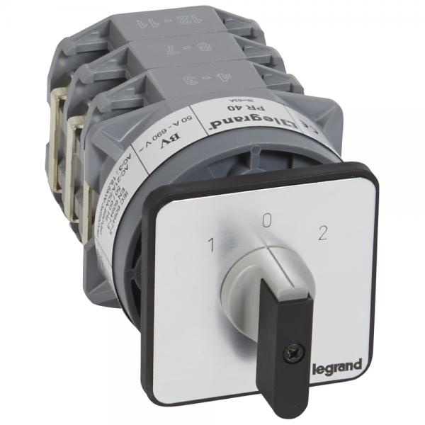 Commutateur à cames moteur triphasé inverseur 1 sens de marche 1 Commutateurs à cames fixation par vis sur porte de 16 à 63 A Permettent de sélectionner et de changer l'état des circuits dans lesquels ils sont intégrés Permettent de visualiser l'état de l'équipement en fonction de la position de la manette Montage sur portes d'armoires ou portes d'enveloppes Contacts à ouverture positive et double coupure des pôles Présentation, manette gris, noir plastron alu avec marquage Conformes aux normes IEC EN 60947 3 Agréés UL CSA USA Canada IP 40 à l'avant de l'enveloppe manette IP 2X à l'arrière de l'enveloppe jusqu'à PR 26 pour PR 40 et 63, nous consulter Inverseurs avec position arrêt 45° Nombre de pôles, 2 Gamme, PR 17 Valeur maxi en AC 21, 20 A Nombre contacts, 4., Nombre de pôles: 2 , Volume: 0., 52 dm3 , Poids: 161., 00 g Interrupteur Industriel Position Arrêt 45 Commutateur à Cames Inverseur Avec Position Arrêt 45° PR17 - 1P - 2 Commutateur à Cames Legrand PR17 Caractéristiques techniques · Type d'interrupteur. Commutateur multi-positions · Nombre de pôles. 2 · Tension de fonctionnement nominale max. Ue en CA. 690V 027433 Commutateur à cames inverseur avec position arrêt 45° PR12 - 4P...
