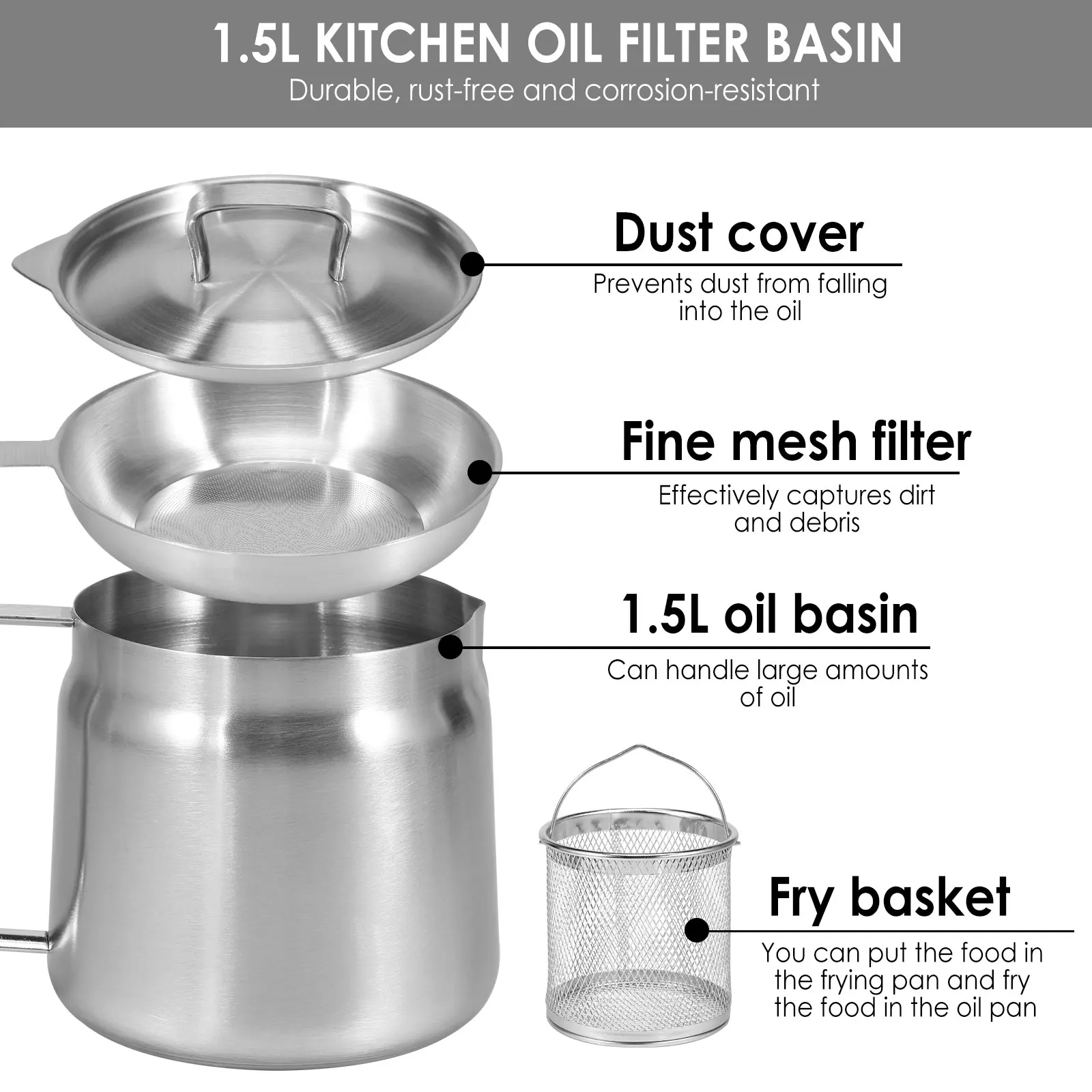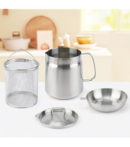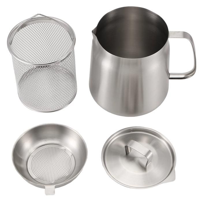 VBESTLIFE pot de filtre à huile Récipient de graisse de bacon Récipient Son excellente conductivité thermique vous permet de chauffer les aliments plus rapidement et de manière plus constante pour des résultats délicieusement croustillants Friteuse Inox 2 En 1 Pot à Huile, Pot à Huile En Acier Inoxydable, Friteuse à Huile De Ustensile Cuisine Inox Durable et robuste : cette friteuse robuste est fabriquée en acier inoxydable 304 de qualité alimentaire. Petite Friteuse Avec Panier 1 Ensemble 1 8L Mini Friteuse À Huile En... VBESTLIFE pot de filtre à huile Récipient de graisse de bacon Récipient... La polyvalence à son meilleur : faites bouillir, mijotez, cuisez à la vapeur et faites frire n'importe quel aliment dans cette friteuse. Expérience de cuisson améliorée : profitez d'une expérience de friture facile avec le panier à friture intégré de la friteuse, qui aide à filtrer les impuretés et empêche les gouttes, rendant vos aliments frits plus sains et plus délicieux Compatibilité étendue : la friteuse est conçue pour être utilisée avec des plaques électriques vitrocéramiques, des grils électriques et même des cuisinières à induction. Caractéristiques:Matériau du produit : bois + acier inoxydablePoids du produit : 690gTaille du produit: environ 27,7x12,5 cm/10,91x4,92 poucesListe de colisage:Marmite à friteuse avec manche en bois x1Panier à friture x1Couvercle en verre x1Pince alimentaire x1Remarques :1., En raison des différents effets de moniteur et de lumière, la couleur réelle de l'article peut être légèrement différente de la couleur montrée sur les images. Prise en main sécurisée et conviviale : conçue avec une connexion rivetée pour une prise ferme et une poignée allongée pour éviter les brûlures, cette friteuse assure sécurité et facilité d'utilisation. Parfait pour une variété de besoins de cuisson, il peut être utilisé sur les cuisinières à induction et autres tables de cuisson.