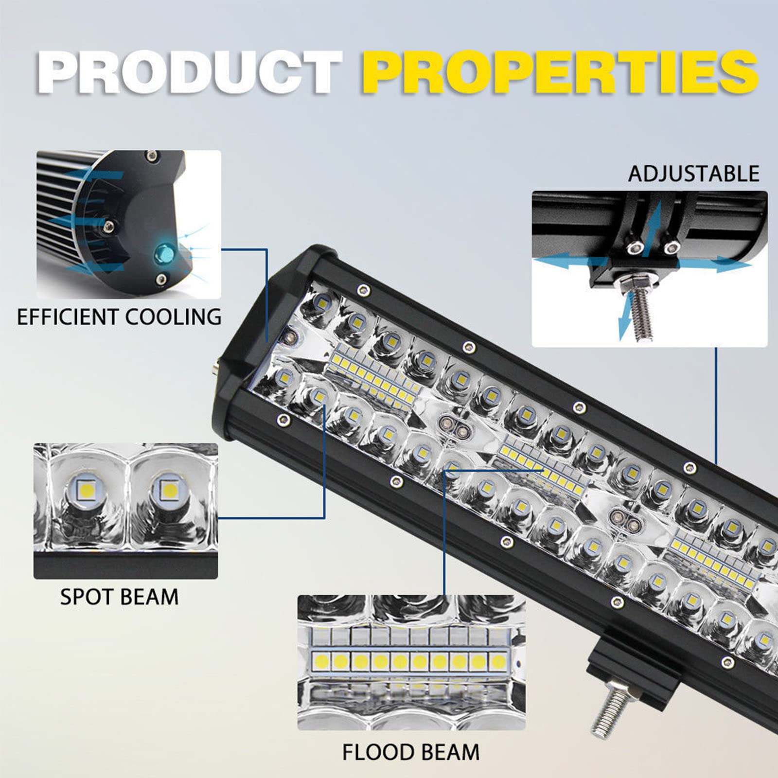 Design Combo Faisceau Faisceau spot : plus de luminosité et plus de distance d'irradiation ; faisceau large – éclairage à spectre plus large et champ de vision plus large. Cette barre lumineuse de travail est compatible avec tous sortes de véhicules (quad, tout-terrain, 4x4, camion, tracteur, chariot-élévateur, embarcation, etc... Les LED émettent une lumière blanche de 6000K, qui peut éclairer efficacement la route et les environnements de travail. Produit de grande qualité. Lampe LED Voiture Tracteur RIGIDON 45 Cm 18 Pouces 252W Led Light Barre Avec 12v Faisceau De Câblage Kit, 2 Pcs Aimanté Support, Barre D'éclairage Led Pour Offroad Véhicules Voiture Camions SUV 4x4, 6000K Barre Lumineuse Imperméable IP67 Support réglable Facile à installer avec un support de montage réglable et coulissant qui facilitera le changement de direction du faisceau lumineux. Nous sommes une entreprise professionnelle qui fournit à nos clients des produits d'éclairage LED. Refroidissement efficace Système de refroidissement efficace spécialement conçu avec des ailettes thermiques pour prolonger la durée de vie. Équipé de lentilles antichoc et incassables de haute qualité, en polycarbonate, capables de bien focaliser la lumière et d'assurer un éclairage extrêmement lumineux. 【Installation facile】 Cette lampe est facile à installer avec un support standard. Barre lumineuse LED 45,7 cm 252 W avec support de montage pour plaque d'immatriculation Caractéristiques : * LED : LED de haute qualité et haute intensité * Température de couleur : 6000 K * Faisceau : Faisceau combiné (faisceau large et spot) * Couleur de la base : Noir * Indice d'étanchéité : IP67 * Température de fonctionnement : -40 ~ 65 degrés Celsius * Tension de fonctionnement : 10 V-30 V CC (convient aux véhicules 12 V, 24 V) * Matériau : Boîtier en aluminium moulé sous pression, lentille en polycarbonate * S'adapte à différents types de camions, véhicules tout-terrain, 4x4, SUV, etc. Imperméable, résistant aux chocs, à la poussière, antirouille, durable., Facile à installer. Nos lampes sont fabriquées à partir de matériaux de haute qualité, adaptées pour les 4x4, tout-terrain, camion, SUV, VTT, UTE, bateaux, remorques, véhicules d'ingénierie, etc. Pour un voyage lumineux et sécurisé pour vous Nos lampes sont fabriquées à partir de matériaux de haute qualité, adaptées pour les 4x4, tout-terrain, camion, SUV, VTT, UTE, bateaux, remorques, véhicules d'ingénierie, etc. 【Large application】Large tension 9-30V, Convient pour les VTT, les véhicules d'ingénierie, les Offroads, les SUV, les excavatrices, les chargeuses sur pneus, les camions, les tracteurs, les remorques, les caravanes, etc. PICAA 18 Inch 252W LED Bar 4x4 with Mounting Bracket, 12V 24V